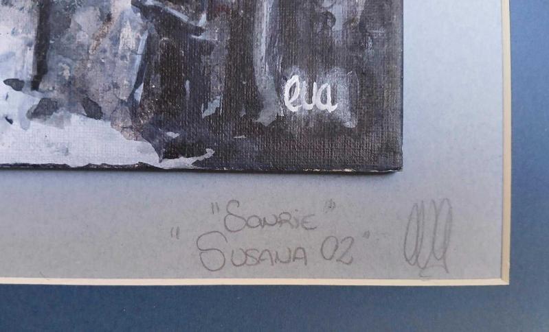 Gülümsemek "Sonrie" Adlı. Pres Tuval Üzeri Akrilik Boya (Karışık Teknik). Susana/EVA 2002 İmzalı. Eser Ölçüsü: 20x20 cm. Çerçevesi-Paspartusu Dahil: 42x42 cm. NOT: Çerçevesi Ahsap Üzeri Alçı Kaplama, Desenli Altın Varak Kaplamadır. (Özel Koleksiyondan..) başlıklı antika/koleksiyon objesi Avrupa menşe’lidir. 2000 ve sonrası dönemine aittir.