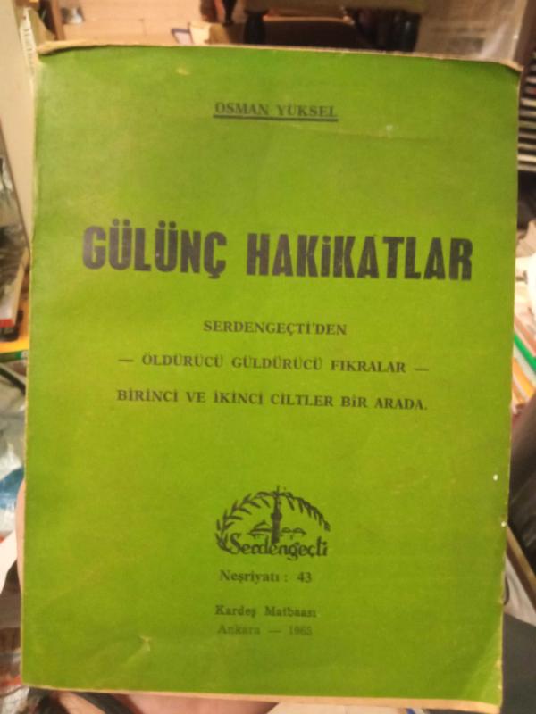 Gülünç Hakikatlar - Serdengeçti'den Güldürücü Öldürücü Fıkralar Birinci ve İkinci Cilt Bir Arada adlı eser, Kitap > Edebiyat, Kurgu > Deneme, Eleştiri > Türk Edebiyatı kategorisinde İkinci El olarak satıştadır.