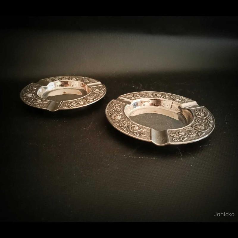 Gümüş Kaplama Çift Kül Tablası başlıklı antika/koleksiyon objesi Avrupa menşe’lidir. 1950-1999 arası dönemine aittir.