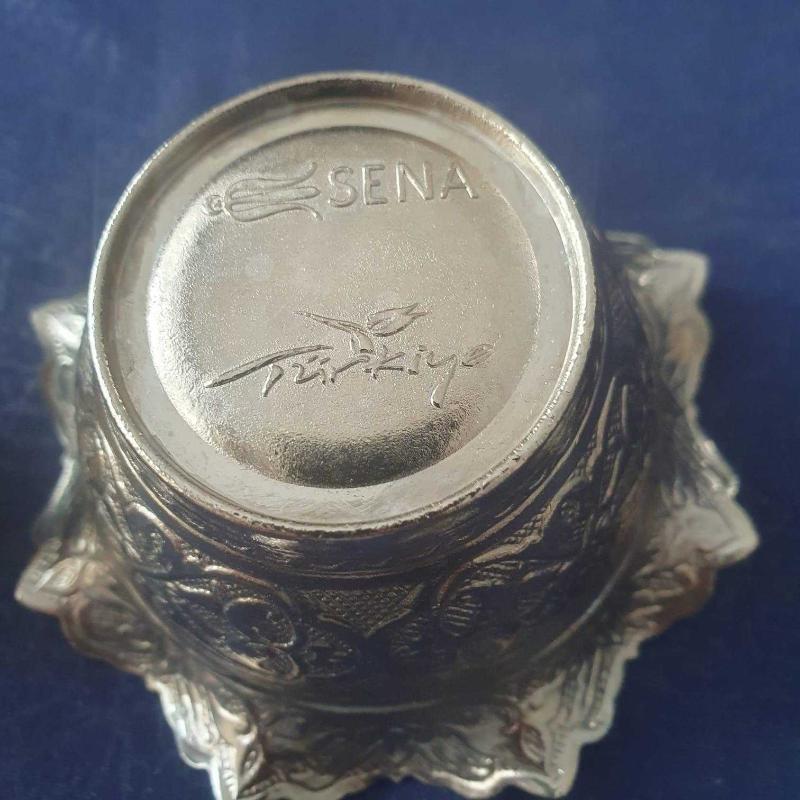 Gümüş Kaplama Dekoratif Şekerlik başlıklı antika/koleksiyon objesinin menşei belirtilmemiştir. Objenin ait olduğu dönem bilinmeketedir.