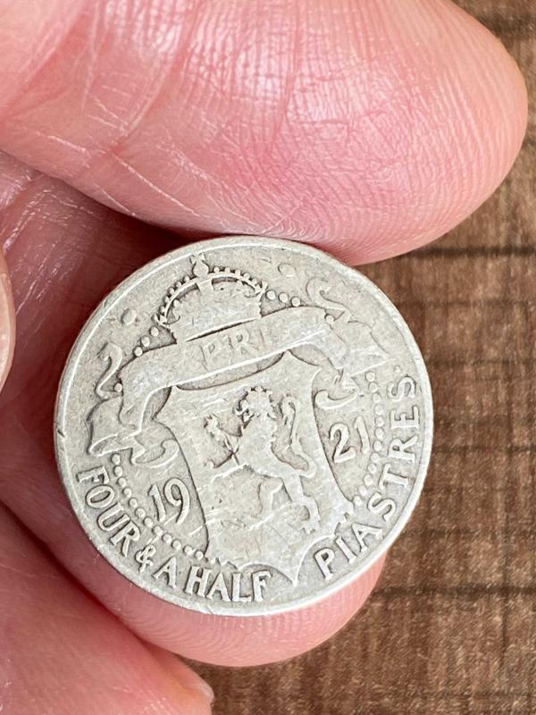 Gümüş para 1921 tarihli Kıbrıs Poundu. 4½ Piastres. Kral George V. dönemi. . 1921 4 buçuk Kıbrıs Piastres. Gümüş 4 buçuk piastres Gümüş Kıbrıs piastres. . Gümüş Kıbrıs poundu. 1921 CYPRUS FOUR & A HALF PIASTRES . GEORGIUS V DEI GRA. REX ET IND. IMP.