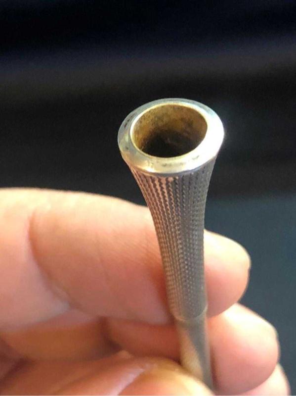 Avrupa yapımı, aznavur işçilikli gümüş ağızlık. 12 cm uzunluğundadır.