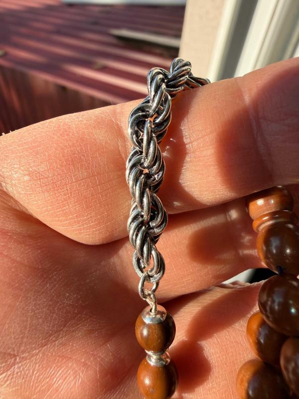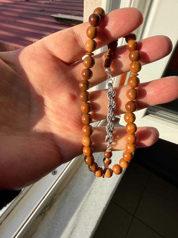 33 habbeli 925 ayar gümüş püsküllü harika usta işi kuka tesbih. Ürün yenidir. Tane çapı 8mm. Bütün metal aksamı 925 ayar gümüştür.