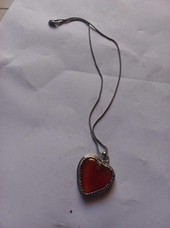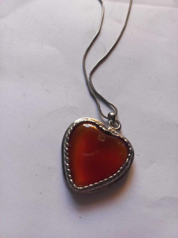 Gümüş renginde ortasında akik taş bulunan 2 cm boyutunda kalp formunda kolye, en son 8 gün önce güncellenmiştir.