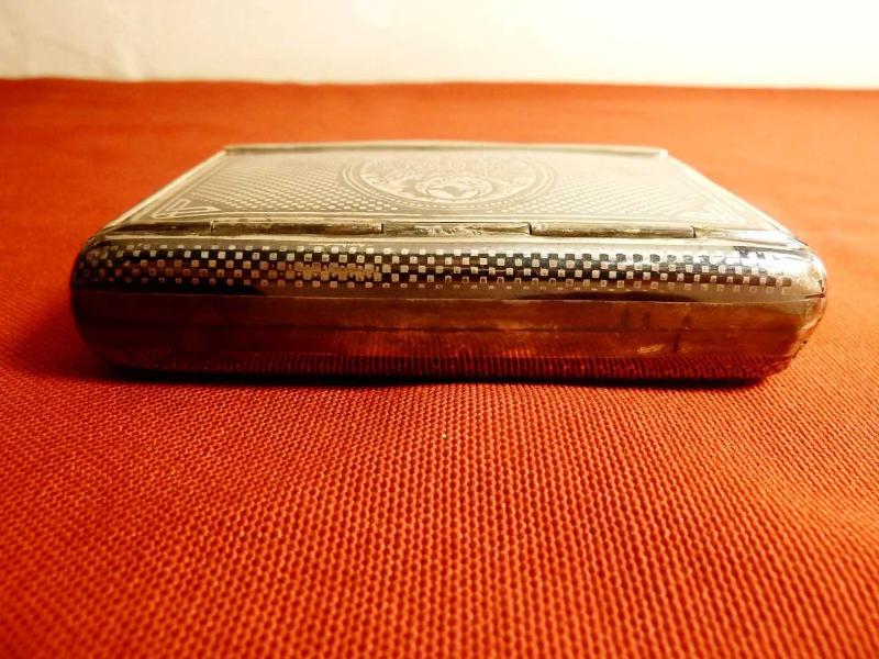 Gümüş, savatlı Osmanlı dönemi sigara tabakası. Usta damgalı. Kondisyonu iyi. Ebatları: 9x6,5cm. 120gr.