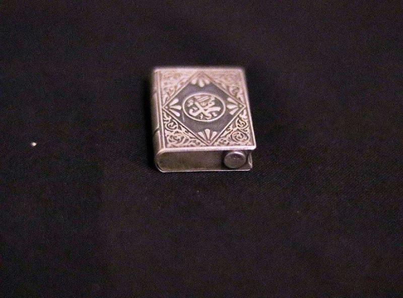 Ürün grubu: Antika gümüş, gümüş kaplama objeler- Gümüş, tuğralı, sürgülü kapaklı, kalem işi, el kakması Kuran kabı, cevşen, kolye ucu. 2,5x3,3cm. van sigara tabakası, van tabaka kutusu, gümüş tabaka kutusu, gümüş van tabaka, savatlı gümüş tabaka kutusu, savatlı van tabaka, gümüş savatlı van tabaka, kalem işi sigara kutusu, el kakması sigara kutusu, gümüş sigara kutusu, van gümüş sigara kutusu, gümüş ağızlık, savatlı ağızlık, kalem işi ağızlık, gümüş el kakması ağızlık, gümüş parfüm şişesi, gümüş koku şişesi, gümüş kolye parfüm şişesi, gümüş muska kabı, muska kılıfı, muska kabı, kuran kabı, gümüş tuğralı, gümüş kuran kabı,