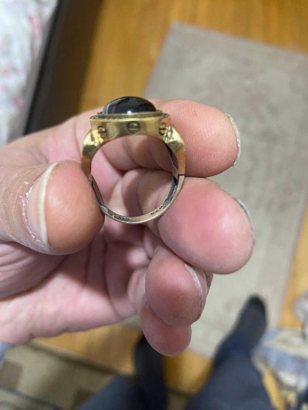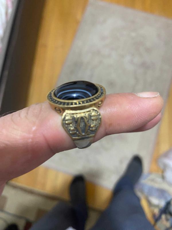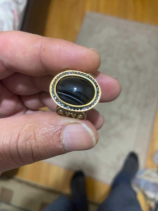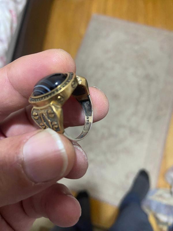 Alt kısım gümüş üst kısım bronz yüzük Orjinal doğal taşlı 20 numara civarı