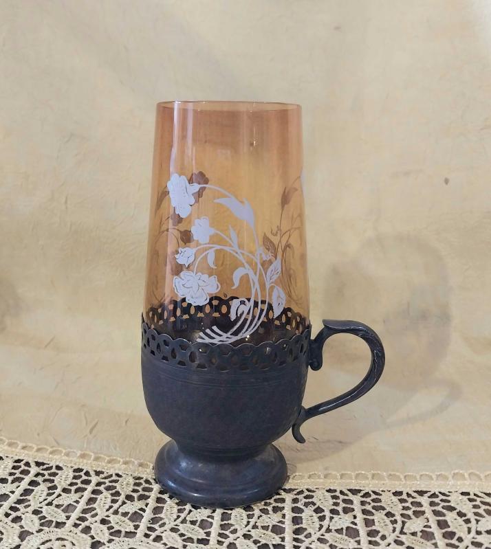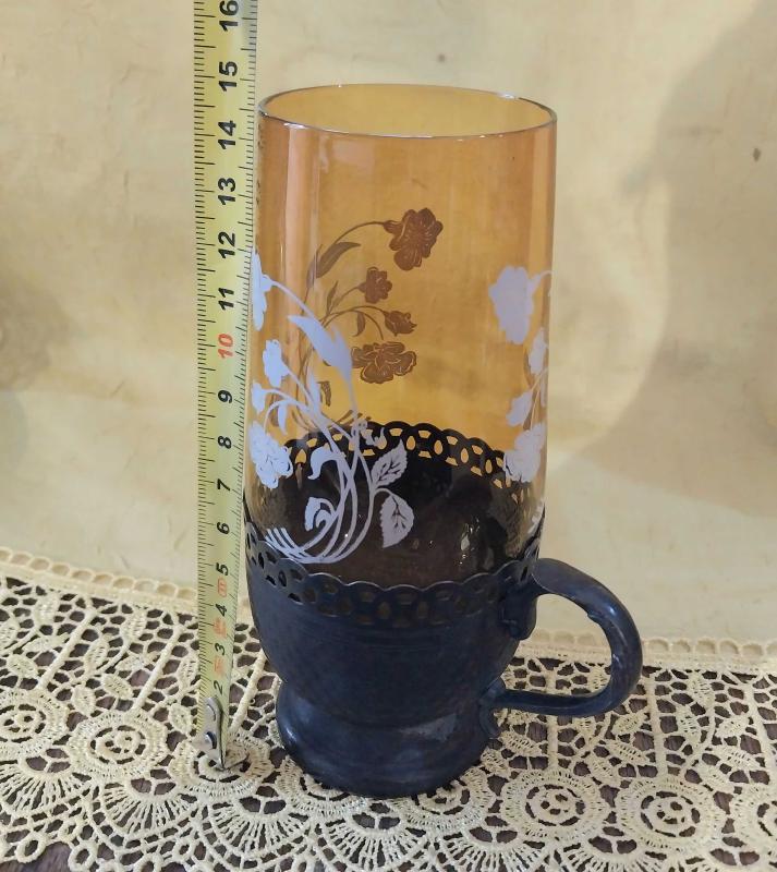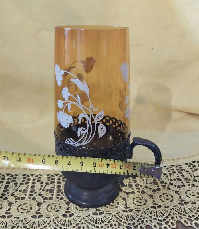 Gümüş veya gümüş kaplama Osmanlı son dönem bardak ve zarfı.. başlıklı antika/koleksiyon objesi Avrupa menşe’lidir. 1920-1940 arası dönemine aittir.