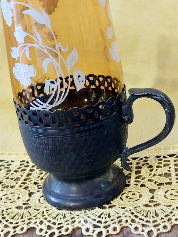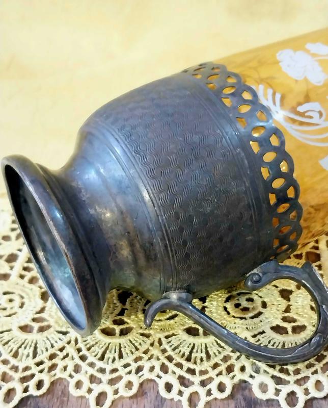 Gümüş veya gümüş kaplama Osmanlı son dönem bardak ve zarfı.