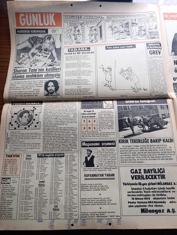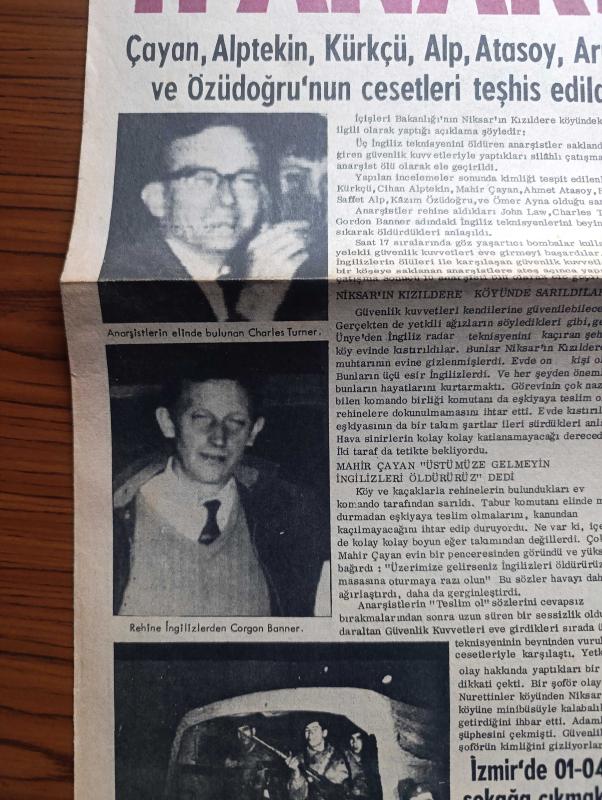 Gün Gazetesi - Turkish Newspaper - 31 Mart 1972 - kızıldere'de sarıldıkları evde rehine İngilizleri katleden 11 anarşist öldü fotoğraf - Mahir Çayan Cihan Alptekin Ertuğrul Kürkçü Ahmet Atasoy Hüdai Arıkan Kazım Özüdoğru'nun cesetleri teşhis edildi - Ömer Ayna - anarşistlerin elinde bulunan Charles Turner Ve Corgon Banner Fotoğrafı - anarşistleri niksar'ın Kızıldere köyünde saran komandolar - İzmir'de 01 04 arası sokağa çıkmak yasak - turistler Aydınlı grevcilerle horon tepip göbek attı - 1969'da güzel Yıldız Sharon Tate ve bir kişiyi öldüren Manson bir daha mahkum olmuştu - İngiliz pankrasçısı Mighty Chang rakipleri ürksün diye kendini Türk olarak tanıtıyor Fotoğrafı - Hülya Koçyiğit'i pahalı bulan Yunanlı filmciler benzeri olan Rus dilberi Nica'yı piyasaya sürdü Fotoğrafı - güzel Cahide Sonku'nun güzel kızı Ender kabiliyetini annesinden almış Fotoğrafı - Kocamustafapaşa'da ağaçlara hücum Fotoğrafı - minik futbol yıldızı Hasan Nazlıgül Fotoğrafı - 3 ayrı Neslin temsilcisi öğretmen, Haldun Simavi tarafından kaleme alınmıştır. Gün Gazetesi - Turkish Newspaper - 31 Mart 1972 - kızıldere'de sarıldıkları evde rehine İngilizleri katleden 11 anarşist öldü fotoğraf - Mahir Çayan Cihan Alptekin Ertuğrul Kürkçü Ahmet Atasoy Hüdai Arıkan Kazım Özüdoğru'nun cesetleri teşhis edildi - Ömer Ayna - anarşistlerin elinde bulunan Charles Turner Ve Corgon Banner Fotoğrafı - anarşistleri niksar'ın Kızıldere köyünde saran komandolar - İzmir'de 01 04 arası sokağa çıkmak yasak - turistler Aydınlı grevcilerle horon tepip göbek attı - 1969'da güzel Yıldız Sharon Tate ve bir kişiyi öldüren Manson bir daha mahkum olmuştu - İngiliz pankrasçısı Mighty Chang rakipleri ürksün diye kendini Türk olarak tanıtıyor Fotoğrafı - Hülya Koçyiğit'i pahalı bulan Yunanlı filmciler benzeri olan Rus dilberi Nica'yı piyasaya sürdü Fotoğrafı - güzel Cahide Sonku'nun güzel kızı Ender kabiliyetini annesinden almış Fotoğrafı - Kocamustafapaşa'da ağaçlara hücum Fotoğrafı - minik futbol yıldızı Hasan Nazlıgül Fotoğrafı - 3 ayrı Neslin temsilcisi öğretmen adlı eser Türkçe dilindedir.