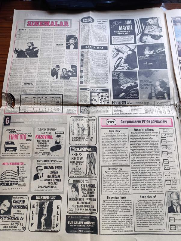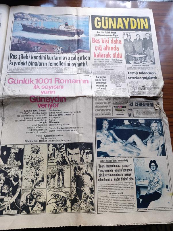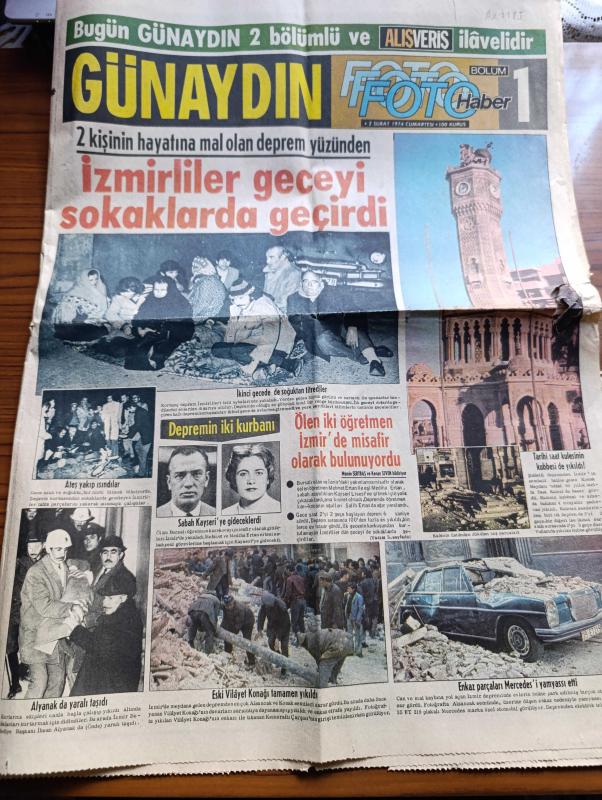Günaydın Foto Haber 1 Gazetesi - 2 Şubat 1974 - 2 Kişinin Hayatına Mal Olan Deprem Yüzünden İzmirliler Geceyi Sokaklarda Geçirdi Fotoğraf - Tarihi Saat Kulesinin Kubbesi Yıkıldı - İzmir Belediye Başkanı İhsan Alyanak Yaralı Taşıdı - Depremin İki Kurbanı Mehmet Medita Ertan - Enkaz Parçaları Mercedes'i Yamyassı Etti - Olimpia Night Club - Foliberjer Night Club - Sevilen Sanatçı Chopin Frederic - Büyükdere Reks Gazinosu - Türkan Fulya - Eşlerin Beraber Yıkanması Enerji Tasarrufu Sağlar Fotoğraf - Fatih'in Fedaisi Kara Murat Yazan Rahmi Muratoğlu Çizen Abdullah Turhan - Kalbimdeki Cehennem Foto Roman - Vefa Lisesi'nin İki Güreşçisi Necmi Doğan Ve Ata Karataş İstanbul Şampiyonu Oldu - Ceza Atışı Sırasında Kurallara Aykırı Baraj Yapan Takımın Kaptanı Oyundan Atılacak - Club Kennedy - Ayhan Özgün - Petrol Körfezinin İncileri Röportaj Erdoğan Arıpınar Fotoğraflar Gündüz Serdengeçti - Pay Mağazaları Fiyat Listesi adlı eser, Kitap > Süreli Yayınlar > Gazeteler > Türkiye > Genel > Günlük kategorisinde İkinci El olarak satıştadır.