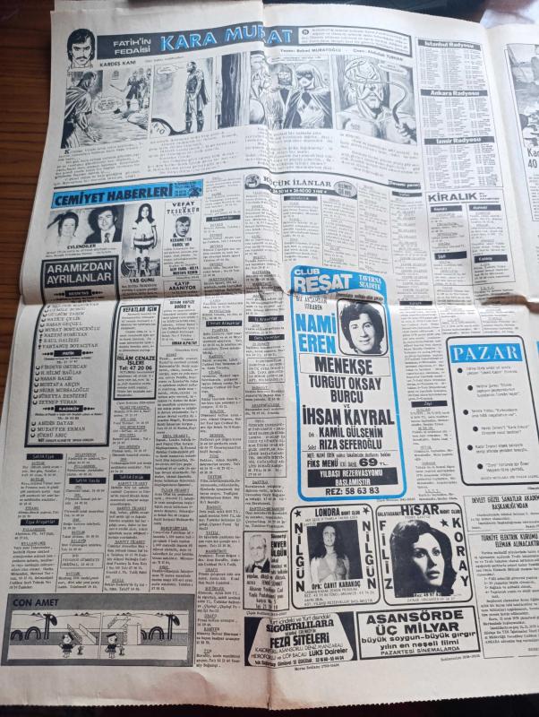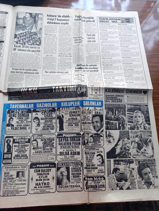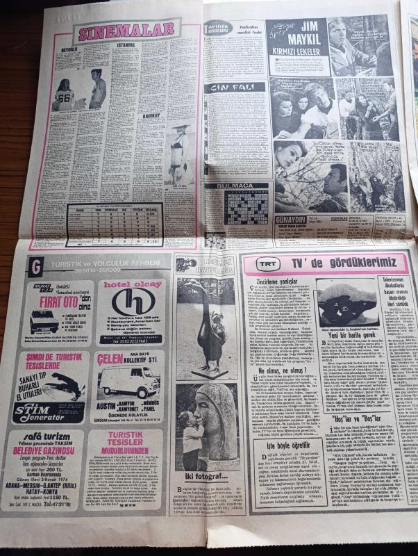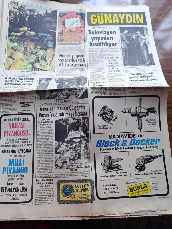 Günaydın Foto Haber 1 Gazetesi - 21 Aralık 1973 - Atlantik'te Facia - Golar Patricia Adındaki Dev İngiliz Gemisi Esrarengiz Bir Patlama Sonunda İkiye Bölünüp Battı 43 Kişi Kayboldu - İstanbul Beyoğlu Kadıköy Sineması Programı - Tarihte Bugün Padişahın Meclisi Fethi - Jim Maykıl Kırmızı Lekeler Foto Roman - TRT Tv'de Gördüklerimiz - Elektrik Tasarrufu İçin Televizyon Yayınları Kısaltılıyor - Amerikan Malları Fatih Çarşamba Pazarında Satılıyor - Medine'ye Geçen Hacı Adayları Yolda Bol Bol Alışveriş Yaptı - Profesör Hıfzı Timur İstanbul Üniversitesi Senatosu'nun Toplantısı Sırasında Öldü - Fatih'in Fedaisi Kara Murat Yazan Rahmi Muratoğlu Çizen Abdullah Turhan - Club Reşat Taverna Reşadiye - Kalbimdeki Cehennem Foto Roman - Büyük Ralli 5 Kıtada Otomobil Yarışı Çizgi Roman - Pola Bana Söz Ver Çizgi Roman - Uzay Yolu Gezegenler Çarpışınca Çizgi Roman - Sabri Kiraz Göztepe Fenerbahçe'yi Durduramaz Dedi - Filiz Akın Hem Hakim Hem Mahkum Oldu Fotoğraf - Çizgili Çoraplar Seksi Gösteriyor adlı eser, Kitap > Süreli Yayınlar > Gazeteler > Türkiye > Genel > Günlük kategorisinde İkinci El olarak satıştadır.