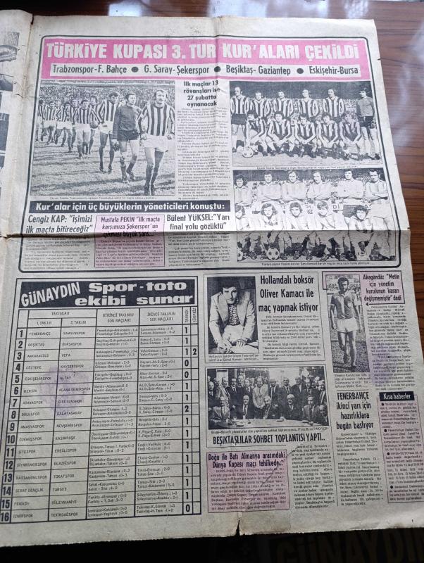 Günaydın Foto Haber 1 Gazetesi - 5 Şubat 1974 - Beyoğlu Soygunu - Bursalı Hüseyin Selçuk'un Sokak Ortasında Hem 3 Bin Lirasını Aldılar Hem De Dayak Attılar - Atatürk Lisesi'nin Sıfırcı Öğretmeni Didar Pınar Dansözle Karşılıklı Göbek Attı - Kumarda Simitlerini Kaydeden Mehmet Esirgen Soluğu Karakolda Aldı - Atatürk Erkek Lisesi Mezunları Cemiyetinin Gecesinde Öğretmenler Masalarında Dansöz Oynatırlarken Fotoğraf - Tarihte Bugün Başa Konan Devlet Kuşu - Jim Maykıl Cehennemden Dönen Kız Foto Roman - Orhan Boran'ı Görelim - Tv'de Bugün - Çin Falı - Turistik Ve Yolculuk Rehberi - Türkiye Kupası 3. Tur Kuraları Çekildi - Trabzonspor Fenerbahçe - Galatasaray Şekerspor - Beşiktaş Gaziantepspor - Eskişehir Bursaspor - Kuralar İçin Üç Büyüklerin Yöneticileri Konuştu - Galatasaray Kulüp Sözcüsü Doğan Akagündüz Metin Kurt İçin Yönetim Kurulunun Kararı Değişmemiştir Dedi - Hollandalı Boksör Oliver Cemal Kamacı İle Maç Yapmak İstiyor, Haldun Simavi tarafından kaleme alınmıştır. Günaydın Foto Haber 1 Gazetesi - 5 Şubat 1974 - Beyoğlu Soygunu - Bursalı Hüseyin Selçuk'un Sokak Ortasında Hem 3 Bin Lirasını Aldılar Hem De Dayak Attılar - Atatürk Lisesi'nin Sıfırcı Öğretmeni Didar Pınar Dansözle Karşılıklı Göbek Attı - Kumarda Simitlerini Kaydeden Mehmet Esirgen Soluğu Karakolda Aldı - Atatürk Erkek Lisesi Mezunları Cemiyetinin Gecesinde Öğretmenler Masalarında Dansöz Oynatırlarken Fotoğraf - Tarihte Bugün Başa Konan Devlet Kuşu - Jim Maykıl Cehennemden Dönen Kız Foto Roman - Orhan Boran'ı Görelim - Tv'de Bugün - Çin Falı - Turistik Ve Yolculuk Rehberi - Türkiye Kupası 3. Tur Kuraları Çekildi - Trabzonspor Fenerbahçe - Galatasaray Şekerspor - Beşiktaş Gaziantepspor - Eskişehir Bursaspor - Kuralar İçin Üç Büyüklerin Yöneticileri Konuştu - Galatasaray Kulüp Sözcüsü Doğan Akagündüz Metin Kurt İçin Yönetim Kurulunun Kararı Değişmemiştir Dedi - Hollandalı Boksör Oliver Cemal Kamacı İle Maç Yapmak İstiyor adlı eser Türkçe dilindedir.