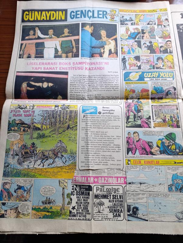 Sayfa Boyutu : 42*58 cm Sayfa Sayısı: 8 Günaydın Foto Haber 1 Gazetesi Yıpranma, sararmalar, kupon kesiği ve yırtılmalar zamana bağlı olarak görülebilir Bilgilendirme : Tam Takım Gazetedir