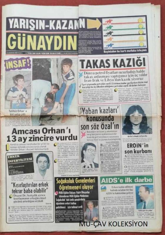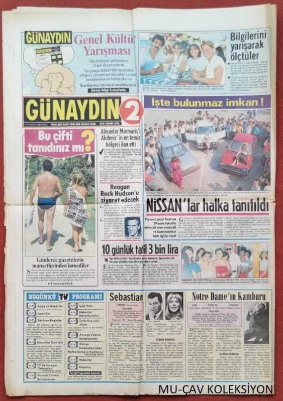 Kitap 1985 yılında yayınlanmıştır. 12 sayfadır. Günaydın Gazete 11 Ağustos 1985,Soğukoluk Genelevleri Öğretmenevi oluyor,Kısırlaştırılmış Erkek Tekrar Baba Olabilir,Orhan’ı Amcası 13 Ay Zincire Vurdu’Turgut Özal,Vehbi Dinçerler,Rock Hudson,Selçuk Yula Nişanlandı,Kaleci Schumacher,Zeynep-Asım Ekren,,Leyla Somer,Deniz Akbulut,Arzu Aytun,Nissan Reklam adlı eser Türkçe dilindedir.