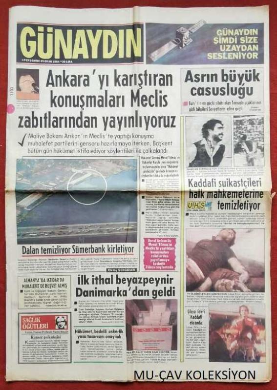 Kitap 1984 yılında yayınlanmıştır. 12 sayfadır. Günaydın Gazete 25 Ekim 1984 Muammer Kaddafi,Yıldız Kenter,Leyla Tepedelen,Mustafa Yalçın,Genç Kartallar Hazır,Mitterand,Ronald Reagan,Turhan Kaşo,Joan Collins,Necla Ak,Tursil Reklam adlı eser Türkçe dilindedir.