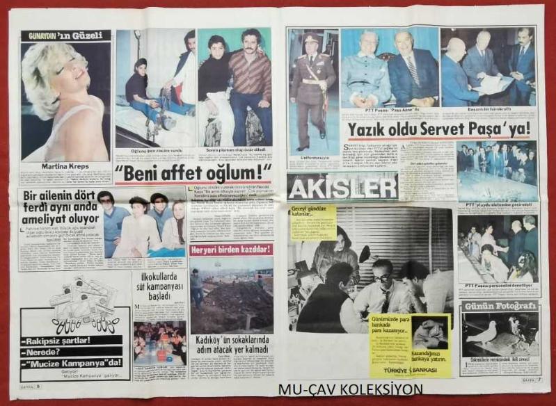 Kitap 1985 yılında yayınlanmıştır. 12 sayfadır. Günaydın Gazete17 Aralık 1985 Turgut Özal,Yılmaz Hastürk,Servet-Nevin Bilgi,Erdoğan Demirören,Stankoviç,Erdoğan Ünver,Cüce Murat,Katharine Ross,Dustin Hoffman,Martina Kreps,Bedrettin Dalan,Ali Koçman adlı eser Türkçe dilindedir.
