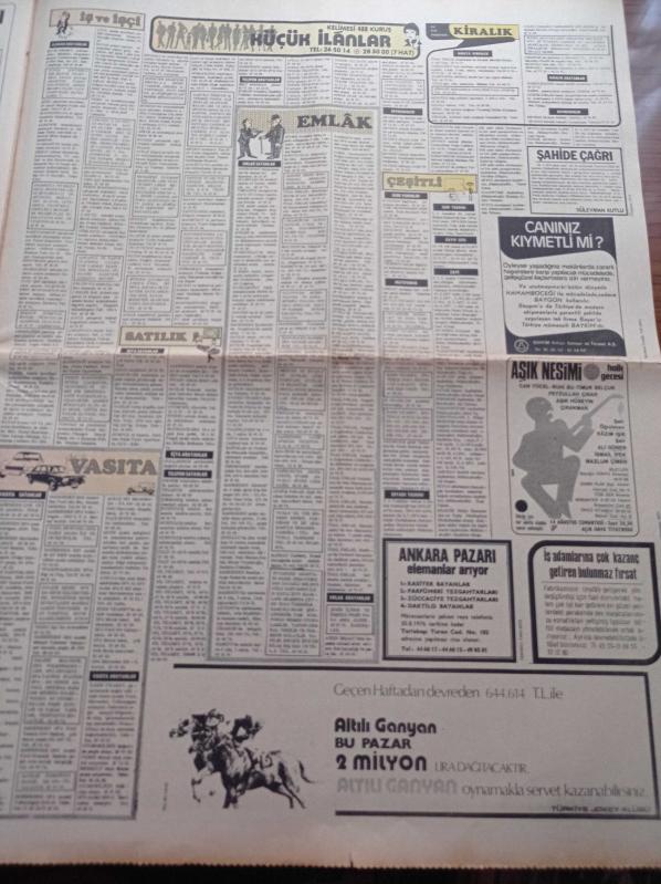 Sayfa Boyutu: 38*56cm Sayfa Sayısı: 8 Günaydın Gazetesi Yıpranma, sararmalar, kupon kesiği ve yırtılmalar zamana bağlı olarak görülebilir