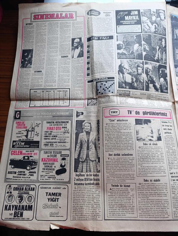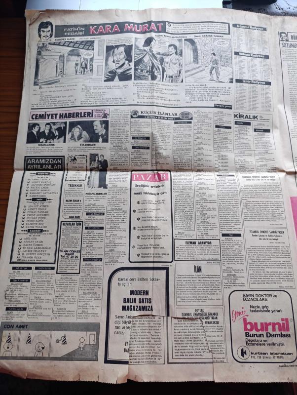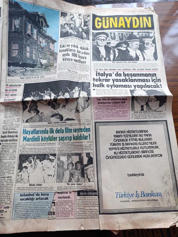 Günaydın Gazetesi - 18 Ocak 1974 - Annesi Bülent Ecevit'e Seslendi Pahalılık Canımıza Tak Dedi Oğlum - Erkekler Karlı Havada Denize Girer de Kadınlar Giremez Mi - Melek Görgün Soğuk Su Vücudu Diri Tutuyor Dedi Fotoğraf - Cevdet Sunay Bir Oda Ve Bir Sekreter İstedi - İstanbul Beyoğlu Kadıköy Sinema Programı - Jim Maykıl Cehennemden Dönen Kız Foto Roman - Çin Falı - TRT Tv'de Gördüklerimiz - İtalya'da Boşanmanın Tekrar Yasaklanması İçin Halk Oylaması Yapılacak - Hayatlarında İlk Defa Film Seyreden Mardinli Köylüler Şaşırıp Kaldı - Türk İş Genel Başkanı Seyfi Demirsoy Toprağa Veriliyor - Fatih'in Fedaisi Kara Murat Yazan Rahmi Muratoğlu Çizen Abdullah Turhan - İstanbullu Berber Serkis Mamikon Hollandalıların Gözbebeği Oldu - Kalbimdeki Cehennem Foto Roman - Pola Bana Söz Ver Çizgi Roman - Uzay Yolu Gezegenler Çarpışınca Çizgi Roman - Büyük Ralli 5 Kıtada Otomobil Yarışı Çizgi Roman - Çelik Kanatlar Çizgi Roman - Almanların Gol Makinesi Müller Gol Kralı Yine Ben Olacağım - Cemil Turan adlı eser, Kitap > Süreli Yayınlar > Gazeteler > Türkiye > Genel > Günlük kategorisinde İkinci El olarak satıştadır.