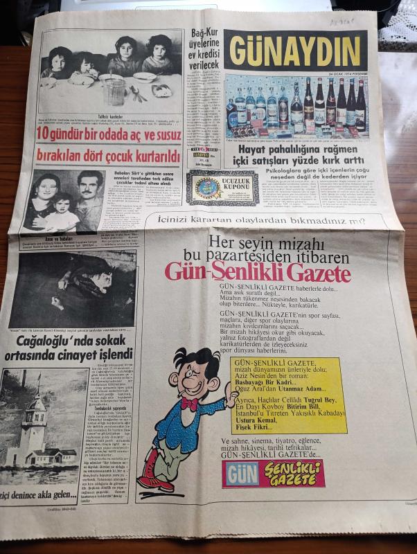 Günaydın Gazetesi - 24 Ocak 1974 - Hayat Pahalılığına Rağmen İçki Satışları Yüzde Kırk Arttı - Bağ Kur Üyelerine Ev Kredisi Verilecek - Cağaloğlu'nda Sokak Ortasında Cinayet İşlendi - Fatih'in Fedaisi Kara Murat Yazan Rahmi Muratoğlu Çizen Abdullah Turhan - Con Amet - Cumhuriyet Halk Partisi İle Milli Selamet Partisi İlişkileri Az Daha Kopuyordu - Beethoven Ve Schubert Mao'nun Kara Listesine Girdi - Gulag Adaları Yazı Dizisi - Mısır Devlet Başkanı Enver Sedat Suriye'nin İsrail'le Anlaşma Yapmaya Hazır Olduğunu Açıkladı - Amerika Dışişleri Bakanı Henry Kissinger Ortadoğu'da İnsanca İlişkiler Çağını Başlattım - 06 Ankara Örsan Öymen Yazıyor - Kalbimdeki Cehennem Foto Roman - Komançi Çizgi Roman - Pola Bana Söz Ver Çizgi Roman - Uzay Yolu Çabuk Değişen Gezegen Çizgi Roman - Çelik Kanatlar Çizgi Roman - Esrarengiz Yolculuk Yazı Dizisi - İstanbul Kız Lisesinden Suzan'ın Bir Smaçı Fotoğrafı - Voleybolda Maltepe Orta İstanbul Şampiyonu Oldu, Haldun Simavi tarafından kaleme alınmıştır. Günaydın Gazetesi - 24 Ocak 1974 - Hayat Pahalılığına Rağmen İçki Satışları Yüzde Kırk Arttı - Bağ Kur Üyelerine Ev Kredisi Verilecek - Cağaloğlu'nda Sokak Ortasında Cinayet İşlendi - Fatih'in Fedaisi Kara Murat Yazan Rahmi Muratoğlu Çizen Abdullah Turhan - Con Amet - Cumhuriyet Halk Partisi İle Milli Selamet Partisi İlişkileri Az Daha Kopuyordu - Beethoven Ve Schubert Mao'nun Kara Listesine Girdi - Gulag Adaları Yazı Dizisi - Mısır Devlet Başkanı Enver Sedat Suriye'nin İsrail'le Anlaşma Yapmaya Hazır Olduğunu Açıkladı - Amerika Dışişleri Bakanı Henry Kissinger Ortadoğu'da İnsanca İlişkiler Çağını Başlattım - 06 Ankara Örsan Öymen Yazıyor - Kalbimdeki Cehennem Foto Roman - Komançi Çizgi Roman - Pola Bana Söz Ver Çizgi Roman - Uzay Yolu Çabuk Değişen Gezegen Çizgi Roman - Çelik Kanatlar Çizgi Roman - Esrarengiz Yolculuk Yazı Dizisi - İstanbul Kız Lisesinden Suzan'ın Bir Smaçı Fotoğrafı - Voleybolda Maltepe Orta İstanbul Şampiyonu Oldu adlı eser Türkçe dilindedir.