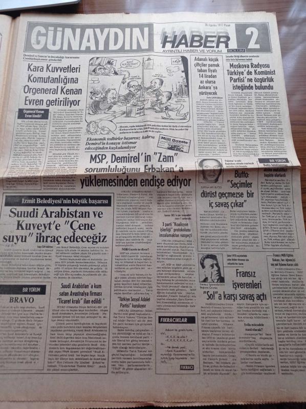 Günaydın Gazetesi - 28 Ağustos 1977 - Dil Kuşa Tiyatrosu - Zihni Göktay - Fenerbahçe Lige 2 Puan İle Başladı - Türkiye Gokart Şampiyonası Başlıyor - Mayın Tarlasında Petrol Bulundu - İçişleri Bakanı Korkut Özal Polisin Silahını Hiç Beğenmedi - Sovyetler Türkiye'de Komünist Parti Kurulmasını İstedi - İzmit'in Ünlü Çene Suyu'nu Suudi Arabistan'a İhraç Edeceğiz adlı eser Türkçe dilindedir.