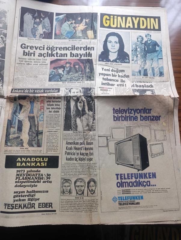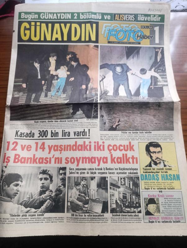 Günaydın Gazetesi - Turkish Newspaper - 10 Şubat 1974 - Türkiye İş Bankası Küçük Mustafa Paşa şubesine gece giren 2 küçük soyguncu teslim oldu Fotoğraf - 12 ve 14 yaşındaki iki küçük çocuk Süleyman Anme ve Bahattin Binici İş bankası'nı soymaya kalktı Fotoğrafı - İş bankası'nın kasasında 300 bin lira vardı - Grevci öğrencilerden Bülent Öztürk açlıktan bayıldı Fotoğrafı - Jim Maykıl foto roman - Galatasaray Olimpia Night Club'de Sex Show - görünmeyen adam filmi Elhamra sinemasında - Ankara'da bir Vaşak vuruldu - Erenköy Paşam Taverna - Süleyman Demirel Bülent Ecevit ile yarım saat Necmettin Erbakan'la 2,5 dakika görüştü - Necmettin Erbakan Milli selamet partisi din partisi değil milliyetçi bir partidir dedi - Adalet Bakanı Şevket Kazan af ay sonuna kadar çıkacak - 72 dilden dünya basını ne diyor - Arafat kendisine karşı çıkan Georges Habbaş'ı Filistin Kurtuluş örgütünden atmak istiyor fotoğraf - Arçelik buzdolabı - Fenerbahçe 2 Samsunspor 0 Fotoğrafı - Muhammed Ali Clay Fotoğrafı adlı eser, Kitap > Süreli Yayınlar > Gazeteler > Türkiye > Genel > Günlük kategorisinde İkinci El olarak satıştadır.