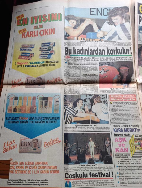 Günaydın Gazetesi - Turkish Newspaper - 16 Mayıs 1988 - Özal iktidarının cinsiyet değişikliği ile ilgili olarak yaptığı icraatı hiçbir hükümetin başaramadığını söyleyen Sabri Çavuşoğlu artık kadın Fotoğrafı - çatışmada 7 bölücü terörist ölü ele geçirildi - Süleyman Demirel eskileri tercih edince gençler öfkelendi - Genelkurmay eski başkanı Necdet Üruğ 200 milyonluk davasını bugün açıyor - Bayram namazı İstanbul'da 6.27'de Ankara'da ise 6.14'te kalacak - İngiltere'de yapılan kadınlar dünya bilek güreş şampiyonası - DYP'de koltuk kavgası - Fransa'da Le Pen'e iktidar yolu açıldı - 11 ayın sultanı ramazan hazırlayan Maruf Evren - cinsel suçlara vahşi cezalar yazan Yazgülü Aldoğan - Sait Faik Burgazada'da anıldı - Seçme sinemalar ve filmler - En büyük Galatasaray - Mustafa Denizli şampiyon olacağımızı biliyordum Fotoğrafı - Galatasaray taraftarları sabaha kadar tur attı - Başbakan Turgut Özal Galatasaray'ı kutladı - şimdi Tanju Çolak'ı Avrupa gol kralı yapacağız - TRT bayram programı, VEB Grubu Yayını tarafından kaleme alınmıştır. Günaydın Gazetesi - Turkish Newspaper - 16 Mayıs 1988 - Özal iktidarının cinsiyet değişikliği ile ilgili olarak yaptığı icraatı hiçbir hükümetin başaramadığını söyleyen Sabri Çavuşoğlu artık kadın Fotoğrafı - çatışmada 7 bölücü terörist ölü ele geçirildi - Süleyman Demirel eskileri tercih edince gençler öfkelendi - Genelkurmay eski başkanı Necdet Üruğ 200 milyonluk davasını bugün açıyor - Bayram namazı İstanbul'da 6.27'de Ankara'da ise 6.14'te kalacak - İngiltere'de yapılan kadınlar dünya bilek güreş şampiyonası - DYP'de koltuk kavgası - Fransa'da Le Pen'e iktidar yolu açıldı - 11 ayın sultanı ramazan hazırlayan Maruf Evren - cinsel suçlara vahşi cezalar yazan Yazgülü Aldoğan - Sait Faik Burgazada'da anıldı - Seçme sinemalar ve filmler - En büyük Galatasaray - Mustafa Denizli şampiyon olacağımızı biliyordum Fotoğrafı - Galatasaray taraftarları sabaha kadar tur attı - Başbakan Turgut Özal Galatasaray'ı kutladı - şimdi Tanju Çolak'ı Avrupa gol kralı yapacağız - TRT bayram programı adlı eser Türkçe dilindedir.
