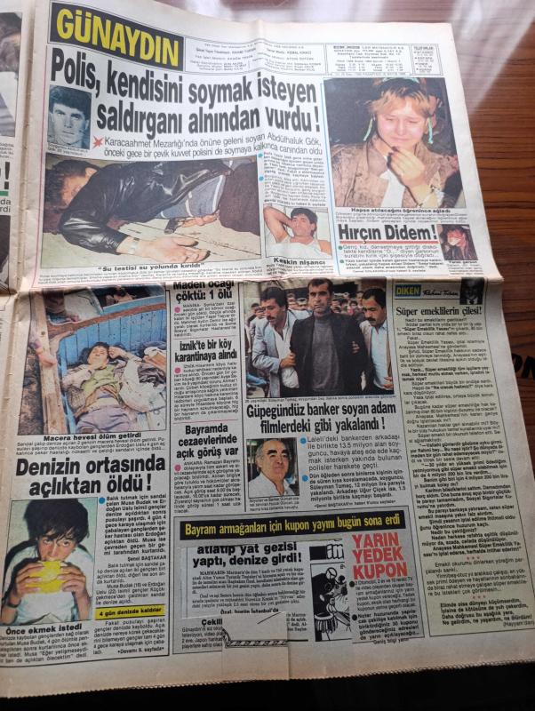 Günaydın Gazetesi Sayfa Boyutu : 42*58 cm Sayfa Sayısı: 12 Yıpranma, sararmalar, kupon kesiği ve yırtılmalar zamana bağlı olarak görülebilir Not: tam takım gazetedir