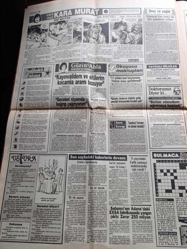 Günaydın Gazetesi - Turkish Newspaper - 16 Mayıs 1988 - Özal iktidarının cinsiyet değişikliği ile ilgili olarak yaptığı icraatı hiçbir hükümetin başaramadığını söyleyen Sabri Çavuşoğlu artık kadın Fotoğrafı - çatışmada 7 bölücü terörist ölü ele geçirildi - Süleyman Demirel eskileri tercih edince gençler öfkelendi - Genelkurmay eski başkanı Necdet Üruğ 200 milyonluk davasını bugün açıyor - Bayram namazı İstanbul'da 6.27'de Ankara'da ise 6.14'te kalacak - İngiltere'de yapılan kadınlar dünya bilek güreş şampiyonası - DYP'de koltuk kavgası - Fransa'da Le Pen'e iktidar yolu açıldı - 11 ayın sultanı ramazan hazırlayan Maruf Evren - cinsel suçlara vahşi cezalar yazan Yazgülü Aldoğan - Sait Faik Burgazada'da anıldı - Seçme sinemalar ve filmler - En büyük Galatasaray - Mustafa Denizli şampiyon olacağımızı biliyordum Fotoğrafı - Galatasaray taraftarları sabaha kadar tur attı - Başbakan Turgut Özal Galatasaray'ı kutladı - şimdi Tanju Çolak'ı Avrupa gol kralı yapacağız - TRT bayram programı adlı eser, Kitap > Süreli Yayınlar > Gazeteler > Türkiye > Genel > Günlük kategorisinde İkinci El olarak satıştadır.
