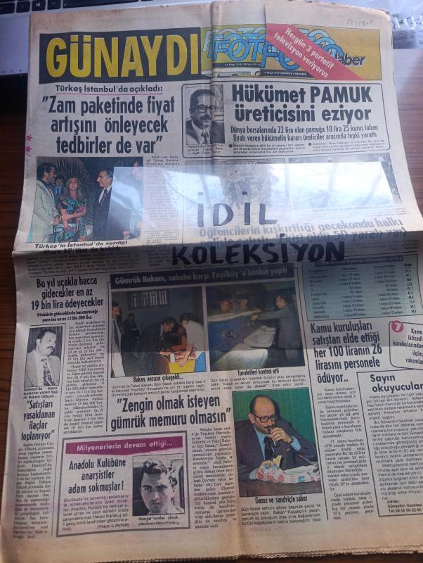 Günaydın Gazetesi - Turkish Newspaper - 3 Eylül 1977 - Alparslan Türkeş İstanbul'da açıkladı zam paketinde fiyat artışını önleyecek tedbirler de var - Alparslan Türkeş'in İstanbul'da verdiği iftara MHP'li aktör Tamer Yiğit de katıldı Fotoğrafı - satışları yasaklanan ilaçlar toplanıyor - hükümet pamuk üreticisini eziyor - Üsküdar'a bağlı Ümraniye semtinde öğrencilerin kışkırttığı gecekondu halkı polisle çatıştı 5 kişi öldü fotoğraf - Gümrük Bakanı Gün Sazak sabaha karşı Yeşilköy'e baskın yaptı Fotoğrafı - Büyükada'daki Anadolu kulübüne anarsistler adam sokmuş - CHP milletvekili Sabri Özdal meclisin toplanamamasına kızıp kalp krizi geçirdi - Fatih'in Fedaisi Kara Murat yazan Rahmi Muratoğlu Çizen Abdullah Turhan - Kafkas Kartalı Şeyh Şamil yazan Oğuz Öndeş Çizen Cemal Dündar - Türk Avcıbaşısı Aziz Bolel Afirkada Yazı Dizisi - sinemayı bırakıp ses sanatçısı olan Selma Güneri İspanyolca bir şarkı söyleyecek Fotoğrafı - Cemile Kutgün'ün sunduğu müzik ve eğlence programı - Rita Hayworth adlı eser, Kitap > Süreli Yayınlar > Gazeteler > Türkiye > Genel > Günlük kategorisinde İkinci El olarak satıştadır.