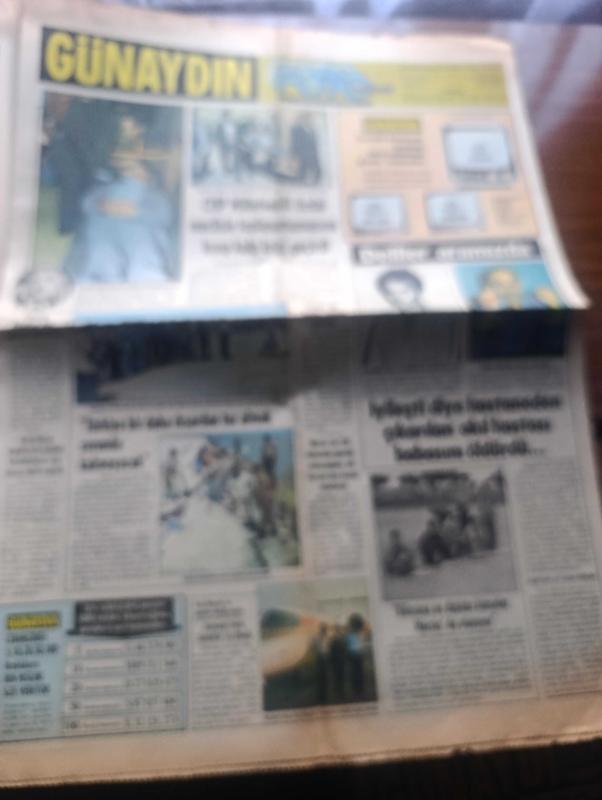 Günaydın Gazetesi Sayfa Boyutu : 42*58 cm Sayfa Sayısı: 8 Yıpranma, sararmalar, kupon kesiği ve yırtılmalar zamana bağlı olarak görülebilir Not: Tam takım gazetedir