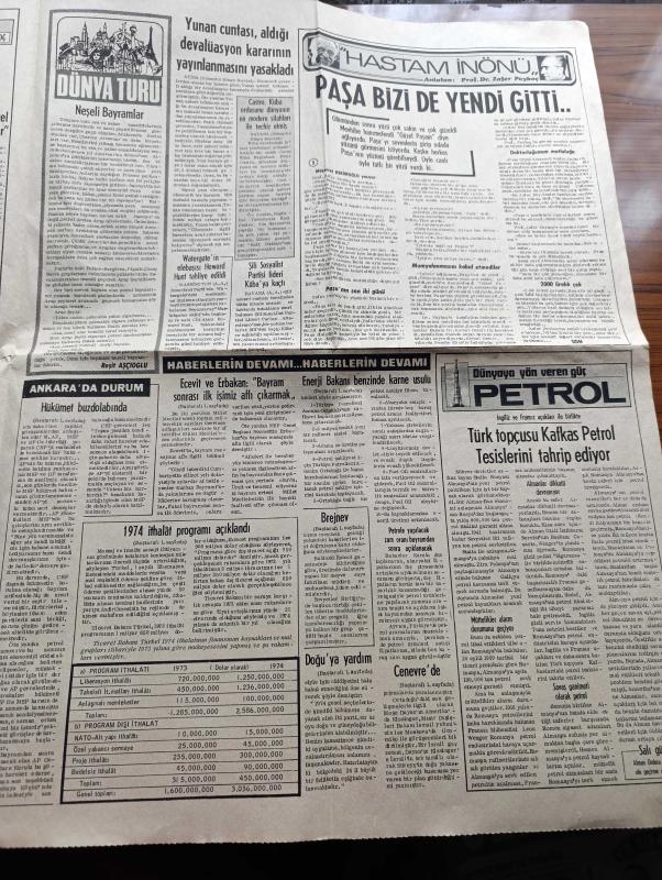 Günaydın Haber 2 Gazetesi - 4 Ocak 1974 - Enerji Bakanı Kemal Demir Benzinde Karne Usulüne Gidilmeyeceğini Açıkladı - Liderler Bayram Mesajı Yayınladı - Bülent Ecevit Ve Necmettin Erbakan Bayram Sonrası İlk İşimiz Affı Çıkarmak - Petrol Sıkıntısı Yüzünden Amerika Hava Şirketleri Boeing 747 Tipi Uçaklarını Seferden Kaldırıyor - Particilik Yüzünden Doğu'ya Yardım Yapılmıyor - İdi Amin İngilizlere Aç Kalmamaları İçin Muz Gönderecek - Hayat Hikayem Yazan Vehbi Koç Yazı Dizisi - Vehbi Koç Eleman Seçerken Nelere Dikkat Etmeli - Bir Uzman Bir Yorum Yazan Profesör Doktor Ünal Tekinalp Köşe Yazısı - Special Beyaz Peynir Kurban Bayramı'nızı Kutlar - Dünya Turu Yazan Reşit Aşçıoğlu - Koç Yatırım Halka Açılıyor - Hastam İnönü Anlatan Profesör Doktor Zafer Paykoç Yazı Dizisi - Şili Sosyalist Partisi Lideri Carlos Altamirano Kübaya Kaçtı - Watergate'in Elebaşısı Howard Hunt Tahliye Edildi - Dünyaya Yön Veren Güç Yazı Dizisi - Fidel Castro Küba Ordusunu En Modern Silahları İle Teçhiz Etmiş, Haldun Simavi tarafından kaleme alınmıştır. Günaydın Haber 2 Gazetesi - 4 Ocak 1974 - Enerji Bakanı Kemal Demir Benzinde Karne Usulüne Gidilmeyeceğini Açıkladı - Liderler Bayram Mesajı Yayınladı - Bülent Ecevit Ve Necmettin Erbakan Bayram Sonrası İlk İşimiz Affı Çıkarmak - Petrol Sıkıntısı Yüzünden Amerika Hava Şirketleri Boeing 747 Tipi Uçaklarını Seferden Kaldırıyor - Particilik Yüzünden Doğu'ya Yardım Yapılmıyor - İdi Amin İngilizlere Aç Kalmamaları İçin Muz Gönderecek - Hayat Hikayem Yazan Vehbi Koç Yazı Dizisi - Vehbi Koç Eleman Seçerken Nelere Dikkat Etmeli - Bir Uzman Bir Yorum Yazan Profesör Doktor Ünal Tekinalp Köşe Yazısı - Special Beyaz Peynir Kurban Bayramı'nızı Kutlar - Dünya Turu Yazan Reşit Aşçıoğlu - Koç Yatırım Halka Açılıyor - Hastam İnönü Anlatan Profesör Doktor Zafer Paykoç Yazı Dizisi - Şili Sosyalist Partisi Lideri Carlos Altamirano Kübaya Kaçtı - Watergate'in Elebaşısı Howard Hunt Tahliye Edildi - Dünyaya Yön Veren Güç Yazı Dizisi - Fidel Castro Küba Ordusunu En Modern Silahları İle Teçhiz Etmiş adlı eser Türkçe dilindedir.