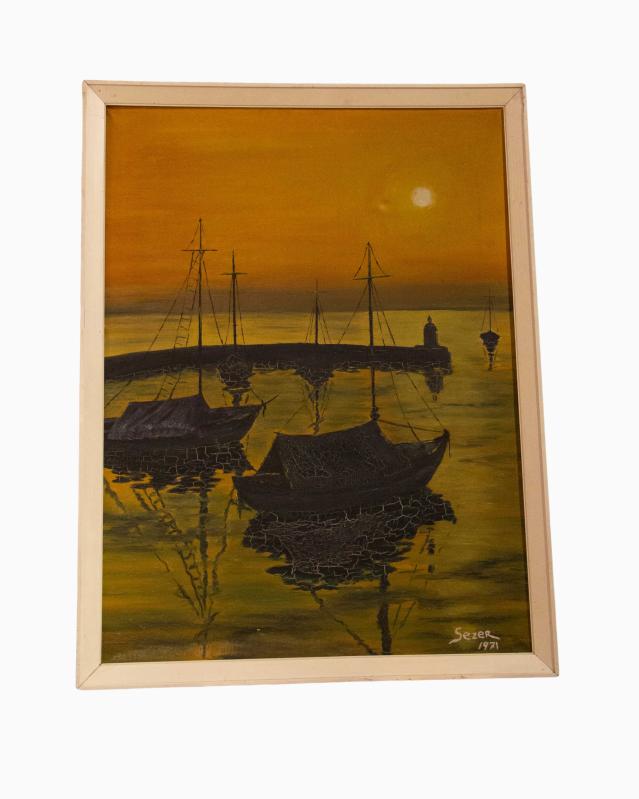 Günbatımı Yelkenli Deniz Manzarası / Sezer imzalı 1971 Tarihli Yağlıboya Çalışma (66-85 cm Çerçevesinde), bir ay önce kitantik’te satışa sunulmuştur.