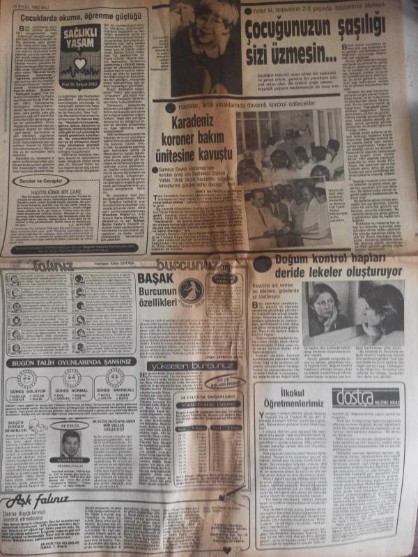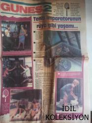 Güneş 2 Magazin Gazetesi - 14 Eylül 1982 - Tenis İmparatorunun Rüya Gibi Yaşamı - Karaoğlan Çizgi Romanı - Suat Yalaz - Tarihi İstanbul Kurtarılmalı - Picasso'nun Köylüsü Picasso'yu Çiziyor - Azra Erhan - Çocuklarda Okuma, Öğrenme Güçlüğü - Selçuk Erez - Çocuğunuzun Şaşılığı Sizi zmesin - Karadeniz Koroner Bakım Ünitesine Kavuştu - Başak Burcunun Özellikleri - Doğum Kontrol Hapları Deride Lekeler Oluşturuyor - İlkokul Öğretmenlerimiz - Nezihe Araz - Şeytan Şatosu - Oyun Bitti Fotoromanı - Sibel Savacı - Görkem Ürgüplü - 25. Yüzyıl - Dedektif Corrigan - Cisco Kid - Süpermen - Latigo - Boncuk - Miki Fare - Temel Resi - Tom ve Jerry Çizgi Romanları - Genç Kızlar Fotoromanı - Engin Çağlar - Güm Güm - Mesleklere Dikiz - Müjdat Gezen - Perran Kutman - Hop Niyazi Bey Neşeli Bulmaca fotoğraf ve haberi - Tam Takım Gazete Yıpranma, sararmalar, kupon kesiği ve yırtılmalar zamana bağlı olarak görülebilir