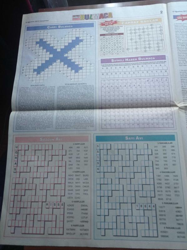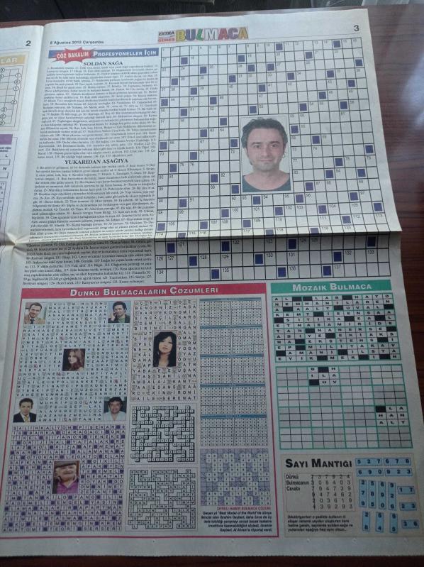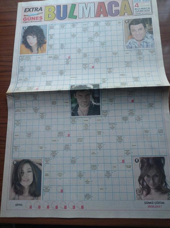 Güneş Bulmaca Gazetesi - 8 Ağustos 2012 - Sinan Özen Fotoğrafı - Coşkun Sabah Fotoğrafı - Deniz Seki Fotoğrafı - Şifreli Haber Bulmaca - Çarpı Bulmaca - Türkiyede Bir İlk Çapraz Bağlar - Sözcük Avı - Sayı Avı - Mozaik Bulmaca adlı eser Türkçe dilindedir.