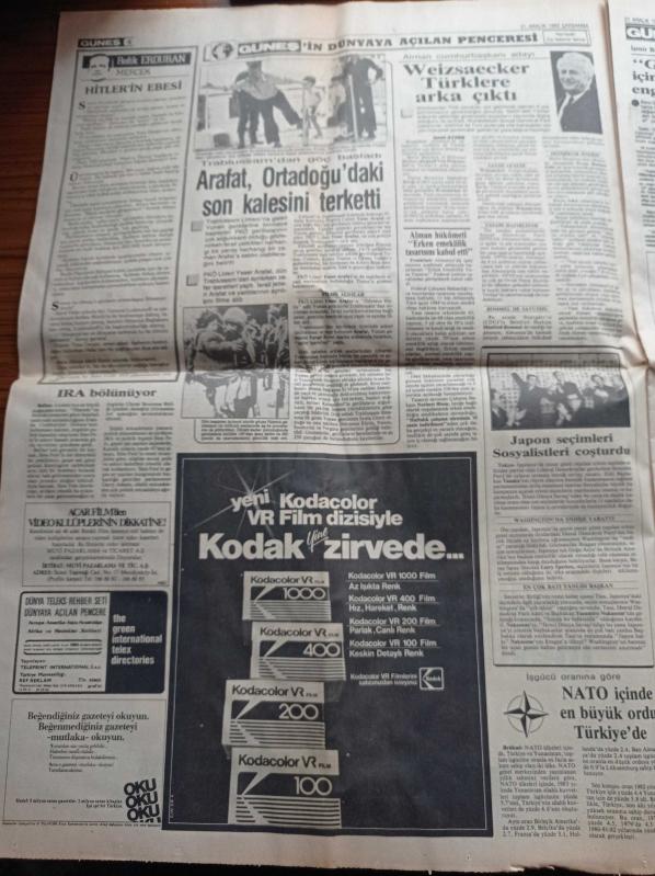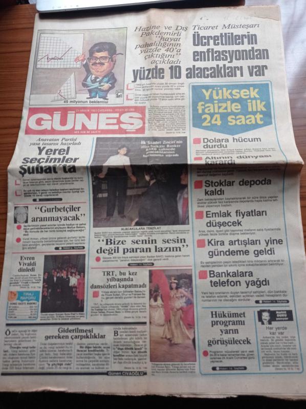 Güneş Gazetesi - 21 Aralık 1983 - Refik Erduran - İsmail Cem - Gönül Yazar - Harika Avcı - Muazzez Abacı - SODEP - Cumhurbaşkanı Kenan Evren Tekel Spor Tesisleri'ni Açtı Ve Bir Konuşma Yaptı - Basketbolda Eczacıbaşı Efes Pilsen'i Bitirdi - Selçuk Yula Fatih Terim Dünya Karması'nda - Anavatan Partisi Yasa Tasarısı Hazırladı - Yerel Seçimler Şubat'ta - Turgut Özal - TRT Bu Yılbaşında Dansözleri Kapatmadı - adlı eser Türkçe dilindedir.