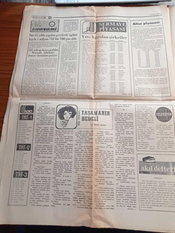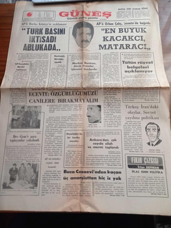 Güneş Gazetesi - 6 Şubat 1979 - Fenerbahçe Teknik Direktörü Necdet Niş Az Kalsın Haksızlığa Kurban Gidecektik - Diyarbakırspor Galatasaray'ı Eli Boş Göndereceğiz - Alparslan Türkeş İran'daki Olaylar Sovyet Yayılma Politikası - Dev Genç'e Para Toplayanlar Yakalandı - Adalet Partili Barlas Küntay'ın Açıklaması Türk Basını İktisadi Ablukada - Adalet Partili Orhan Çalış Senato'da Bağırdı En Büyük Kaçakçı Tuncay Mataracı - Bülent Ecevit Özgürlüğümü Canilere Bırakmayalım adlı eser Türkçe dilindedir.