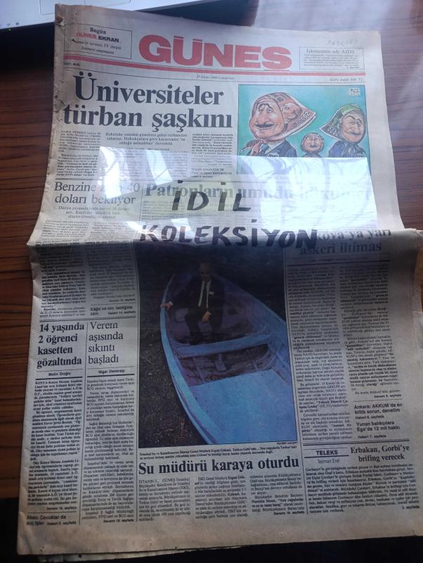 Güneş Gazetesi - Turkish Newspaper - 27 Ekim 1990 - üniversiteliler türban şaşkını - benzine zam 40 doları bekliyor - İstanbul Su ve kanalizasyon idaresi Genel Müdürü Ergun Göknel Terkos gölü'nde Fotoğrafı - Necmettin Erbakan Gorbaçov'a brifing verecek - işkencenin adı AIDS oldu - YÖK Başkanı İhsan Doğramacı'ya tazminat davası - Kadirli'de dağ başında Hitit müzesi Fotoğrafı - Laik Türkiye yürüyüşüne islamcılar da katılıyor - PKK bakkal öldürdü - azınlık olmak Balkanlar ve Kıbrıs yazan Cengiz Çandar - Benazir Butto için şimdi de yerel seçim sınavı - Oruç Auroba Tümceler adlı ilk kitabında dilin olanaklarını araştırıyor Fotoğrafı - satrançta Kasparov beraberlik istedi - Ankara Devlet tiyatrosundan yeni oyun pervaneler - Füsun Önal kimse kitabımdan korkmasın Fotoğrafı - Adnan Kahveci ile ANAP'lı komisyon üyeleri KDV kavgasına tutuştu - Fruko Tamek'te grev - Galleria'da tiyatro günleri - Fenerbahçe basketbolda Beslen'i ezdi geçti - Trabzonspor'da hedef 666. gol - milli takım 68 yaşında adlı eser, Kitap > Süreli Yayınlar > Gazeteler > Türkiye > Genel > Günlük kategorisinde İkinci El olarak satıştadır.
