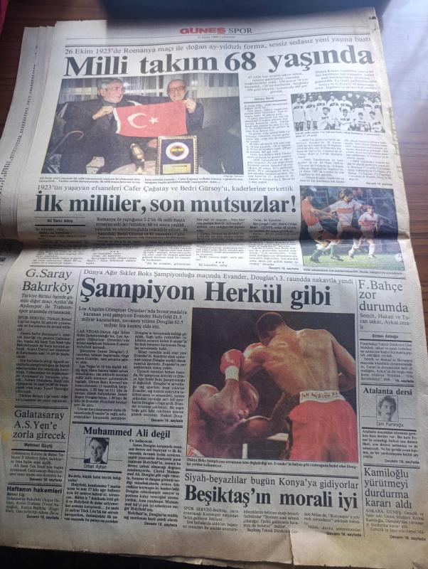 Güneş Gazetesi Sayfa Boyutu : 42*58 cm Sayfa Sayısı: 20 Yıpranma, sararmalar, kupon kesiği ve yırtılmalar zamana bağlı olarak görülebilir Not: Tam takım gazetedir