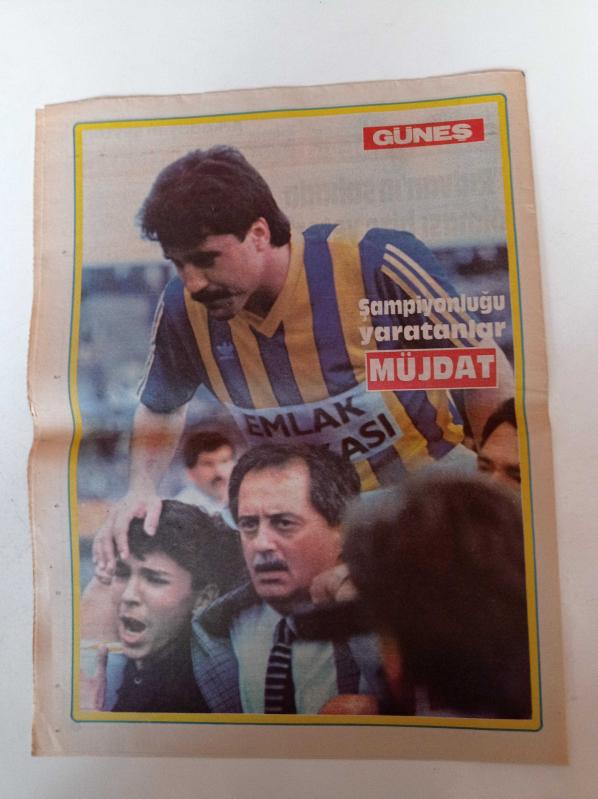 Güneş Spor Şampiyonluk Gazetesi 5 - 1989 - Müjdat Yetkiner Fotoğrafı- Rıdvan Dilmen Yazdı Fenerbahçe'nin Şampiyonluk Öyküsü - Veselinoviç Bizi Otomatiğe Bağladı - Trabzonspor'a Gol Yağmuru - Oğuz Çetin Rıdvan'ın Sahada Olması Bize Yeter adlı eser Türkçe dilindedir.