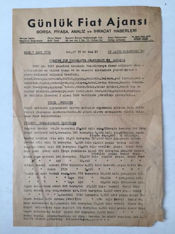 Günlük Fiat Ajansı - Borsa, Piyasa, Analiz ve İhracat Haberleri 23 Mayıs 1960 Sene 7 adlı eser, Kitap > Süreli Yayınlar > Dergiler > İş ve Ekonomi kategorisinde İkinci El olarak satıştadır.