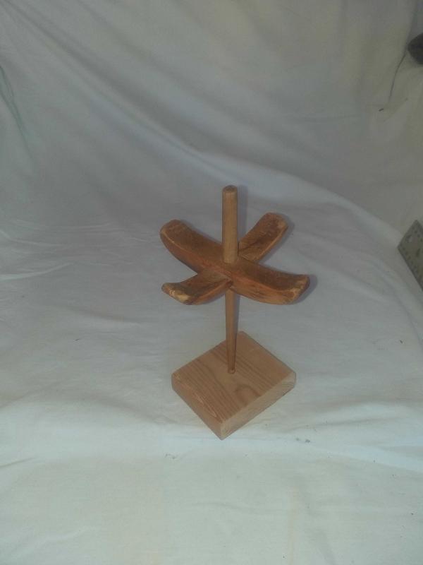Çok Güzel eskimiş , kadife patineli , üzeri süslenmeden bırakılmış , yün , pamuk veya ipekten ip yapmakta kullanılan ahşap kirman... Ürünün şahsına uygun icat edilmiş : ) teşhir standı ile birlikte gönderilecektir... Tekstil el aleti , ethnografik sanat , ethnografic art , folk art...