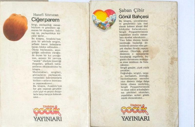 Türkiye Çocuk Yayınları’ndan çıkan, duygusal ve öğretici içerikleriyle öne çıkan iki kitap bir arada lot olarak satıştadır: Ciğerparem – Hanefi Söztutan Gönül Bahçesi – Şaban Çibir Sevgi, merhamet ve manevi değerler üzerine kurgulanmış bu eserler özellikle genç okurlar için hazırlanmış olup, hem eğitici hem de duygusal anlatımlarıyla dikkat çeker. Nostaljik kapak tasarımlarıyla döneminin izlerini taşıyan güzel bir settir. Kondisyon: Kitaplar orta kondisyonludur. Kapaklarda belirgin yıpranma, lekelenme ve kirlenmeler mevcuttur. İç sayfalarda yaşa bağlı sararma görülmektedir. Bazı sayfalarda hafif lekeler ve kullanım izleri bulunabilir. Ciltler duruyor, sayfalar eksiksiz ve okunur durumdadır. Genel olarak temiz koleksiyon kondüsyonunda değildir ancak okunmaya uygundur.