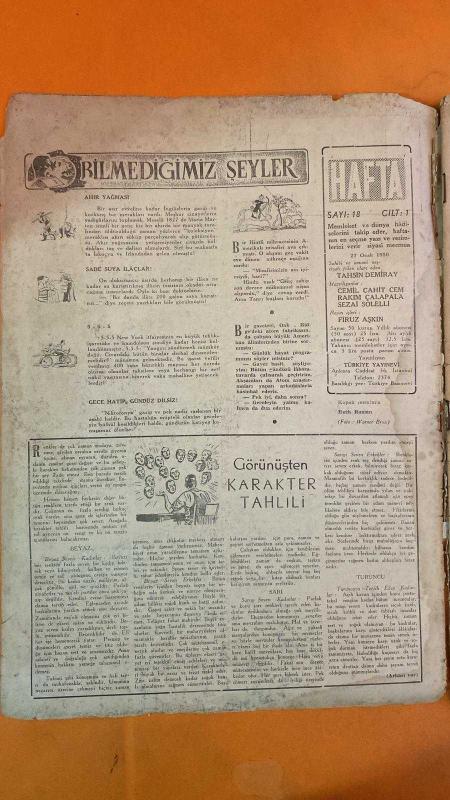 HAFTA MEMLEKET VE DÜNYA HADİSELERİNİ TAKİP EDER, HAFTANIN EN SEÇME YAZI VE RESİMLERİNİ VERİR, SİYASİ MECMUA DERGİSİ - 27 OCAK 1950 SAYI: 18 - TAHSİN DEMİRAY - CEMİL CAHİT CEM - RAKIM ÇALAPALA - SEZAİ SOLELLI - FİRUZ AŞKIN - RUTH ROMAN - PIOTRO - FREDERIC CHOPIN - GEORGE SAND - PLEYEL - GOMEZ - WILLIAM VOGT - CRISTAL GRANDIN - OSMAN ŞAKAR - REFİK NURİ KORDAG - KLAUBUND - HAYTANG - PRENS PAO - ÇANGLING - MARIA MARTEN - SIRF KOLEKSİYON MERAKLILARI - 5-5-5 NEW YORK İTFAİYESİ - NIKTOFONYA - RENKLER VE KARAKTER TAHLİLİ - BEYAZ SEVENLER - SARI SEVENLER - TURUNCU SEVENLER - ATOM ARAŞTIRMALARI - OAK RIDGE FABRİKASI - ŞEHİR TİYATROSU - TEBEŞİR DAİRESİ - BİR KOMİSER GELDİ - ÇİN MASALI - VODVİL - MELODRAM - MİHRACE - HİNTLİ UŞAK - AMERİKALI MİSAFİR - SATIŞ NOKTALARI - TAKSİM CUMHURİYET CADDESİ - İSTİKLAL CADDESİ - PANGALTI - ÇARŞIKAPI - SİRKECİ KIZILAY - KADIKÖY AHMET ÖZGÜL - ANKARA ARİF SALTUK - 36 SAYFA adlı eser, Kitap > Süreli Yayınlar > Dergiler > Magazin, Moda kategorisinde İkinci El olarak satıştadır.