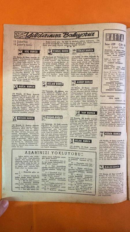 HAFTA MEMLEKET VE DÜNYA HADİSELERİNİ TAKİP EDER, HAFTANIN EN SEÇME YAZI VE RESİMLERİNİ VERİR, SİYASİ MECMUA DERGİSİ - SAYI: 229 12 ŞUBAT 1954 TAHSİN DEMİRAY - CEMİL CAHİT CEM - SEZAİ SOLELLİ - OĞUZ ÖZDEŞ - LISA GAYE - MESLEKLERE GÖRE AŞK - DOKTORLARA GÖRE AŞK - KİTAPÇILARA GÖRE AŞK - ŞOFÖRLERE GÖRE AŞK - SAHAFLAR ŞEYHİZADE MEHMET ESAT - REŞAT EKREM KOÇU - CESÜ ZAFER - VAK’A-İ HAYRİYE - YENİÇERİLERİN BOZULMASI - SON YENİÇERİLER - YENİÇERİLERİN SEFERDEKİ HALİ - YENİÇERİLERİN ERZAK ZORBALIĞI - KARAMÜRSEL PUSULASI - İSTANBUL’DA MEYVE VE SEBZE ZORBALIĞI - SAHAFLAR ŞEYHİZADE’NİN KÜTÜPHANE VAKFI - MEKÂTİB-İ UMUMİYE NAZIRLIĞI - İLK MAARİF NAZIRI - TURKAN TURKER - OTTAWA GENÇ KIZLAR KULÜBÜ - TÜRK KADINI KONFERANSI - KANADALI GENÇLERİN TÜRKİYE ALGISI - KANADA GAZETESİ “CITIZEN” - MODERN TÜRKİYEDE KADIN - KANADA GÜZELLİK KRALİÇESİ - KANADALI POLİSİN TÜRKİYE SORULARI - KANADALI KASAP VE HİNDİ - KANADALI ÖĞRETMEN VE ATATÜRK - 36 SAYFA, Tahsin Demiray tarafından kaleme alınmıştır. HAFTA MEMLEKET VE DÜNYA HADİSELERİNİ TAKİP EDER, HAFTANIN EN SEÇME YAZI VE RESİMLERİNİ VERİR, SİYASİ MECMUA DERGİSİ - SAYI: 229 12 ŞUBAT 1954 TAHSİN DEMİRAY - CEMİL CAHİT CEM - SEZAİ SOLELLİ - OĞUZ ÖZDEŞ - LISA GAYE - MESLEKLERE GÖRE AŞK - DOKTORLARA GÖRE AŞK - KİTAPÇILARA GÖRE AŞK - ŞOFÖRLERE GÖRE AŞK - SAHAFLAR ŞEYHİZADE MEHMET ESAT - REŞAT EKREM KOÇU - CESÜ ZAFER - VAK’A-İ HAYRİYE - YENİÇERİLERİN BOZULMASI - SON YENİÇERİLER - YENİÇERİLERİN SEFERDEKİ HALİ - YENİÇERİLERİN ERZAK ZORBALIĞI - KARAMÜRSEL PUSULASI - İSTANBUL’DA MEYVE VE SEBZE ZORBALIĞI - SAHAFLAR ŞEYHİZADE’NİN KÜTÜPHANE VAKFI - MEKÂTİB-İ UMUMİYE NAZIRLIĞI - İLK MAARİF NAZIRI - TURKAN TURKER - OTTAWA GENÇ KIZLAR KULÜBÜ - TÜRK KADINI KONFERANSI - KANADALI GENÇLERİN TÜRKİYE ALGISI - KANADA GAZETESİ “CITIZEN” - MODERN TÜRKİYEDE KADIN - KANADA GÜZELLİK KRALİÇESİ - KANADALI POLİSİN TÜRKİYE SORULARI - KANADALI KASAP VE HİNDİ - KANADALI ÖĞRETMEN VE ATATÜRK - 36 SAYFA adlı eser Türkçe dilindedir.