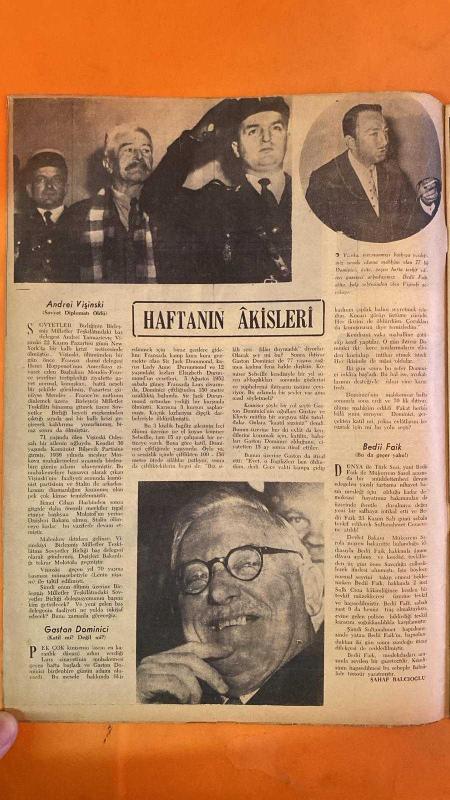 HAFTA MEMLEKET VE DÜNYA HADİSELERİNİ TAKİP EDER, HAFTANIN EN SEÇME YAZI VE RESİMLERİNİ VERİR, SİYASİ MECMUA DERGİSİ - SAYI: 271 3 ARALIK 1954 - JEAN MALEY - JOHN COPE - ANDREI VIŞINSKI - HENRI HOPPENOT - MENDÈS FRANCE - MOLOTOF - MALENKOV - GASTON DOMINICI - JACK DRUMMOND - LADY ANNE DRUMMOND - ELIZABETH DRUMMOND - KOMİSER SEBEILLE - GUSTAV DOMINICI - KLOVIS DOMINICI - BEDİİ FAİK - MÜKERREM SAROL - SAHAP BALCIOĞLU - MANUEL - ISIDRO - N. ROCHA - E. TUTEL - MISS DÜNYA - MISS AKDENİZ - MISS PARİS - MISS NORVEÇ - CELÂL İNCE - AZİZE ERTEN - SESSİZ BİR DÜĞÜN - ANDREI VIŞINSKI'NİN ÖLÜMÜ - LURS CİNAYETİ - DOMINICI DAVASI - BEDİİ FAİK'İN TEVKİFİ - ISIDRO'NUN KADERİ - BOĞA GÜREŞİ - GÜZELLİK DEFİLESİ - PARİS MODASI - ELBİSE MODELLERİ - GECE KIYAFETLERİ - ROBERT PIGUET PARFÜMLERİ - PAUL DERVAL - TEMEL KARAMAHMUT - JOSEPHINE BAKER - FIKRET ARIT - İBRAHİM HİLMİ ÇIĞIRAÇAN - VANKULU MEHMET EFENDİ - YUSUF KAMİL PAŞA - AHMET MİTHAT EFENDİ - NECİP ASIM - SAHHAF CELİL - SAHHAF HASAN - SÜLEYMAN - 36 SAYFA adlı eser, Kitap > Süreli Yayınlar > Dergiler > Magazin, Moda kategorisinde İkinci El olarak satıştadır.