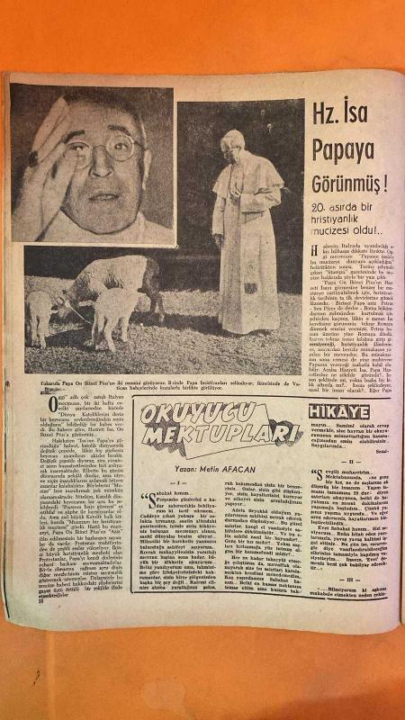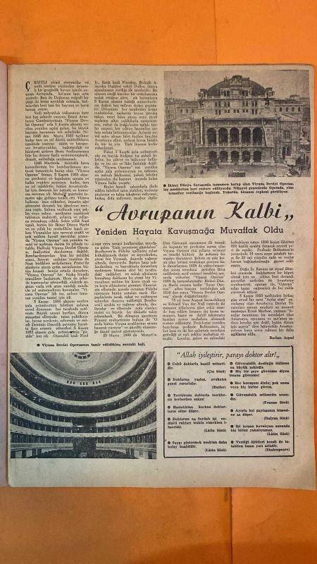 HAFTA MEMLEKET VE DÜNYA HADİSELERİNİ TAKİP EDER, HAFTANIN EN SEÇME YAZI VE RESİMLERİNİ VERİR, SİYASİ MECMUA DERGİSİ - SAYI: 57 - 23 ARALIK 1955 COLETTE DUVAL - BURT LANCASTER - ESER TUTEL - LAWRENTZ KOSCHIR - SIR R. HILL - WILLIAM GORGAS - BENJAMIN FRANKLIN UÇAN MANKEN COLETTE DUVAL - PARAŞÜTLE ATLAMA REKORU - AKDENİZ’DE FIRTINALI ATLAMA - BURT LANCASTER’IN TAKDİRİ - COLETTE’İN İLK ATLAMALARI VE KAZALARI - PARAŞÜT SPORUNDA KADIN CESARETİ - MODA DÜNYASINDA MODELLİK - ANNESİNİN ENDİŞESİ - AIR FRANCE MASKOTU - 1960’A KADAR SPOR VE SONRA EVLİLİK PLANI - POSTA PULUNUN MUCİDİ - KURŞUN KALEMİN TARİHİ - SALYANGOZUN DİŞ SAYISI - ARININ BAL TOPLAMA MESAFESİ - PARATONERİN İCADI - VİYANA DEVLET OPERASI’NIN YENİDEN AÇILIŞI - 5 KASIM 1955 GALA PRÖMİYERİ - SAVAŞ SONRASI RESTORASYON - HALKIN SANATA OLAN İLGİSİ - MİLYONERLER VE MÜCEVHERLER - VİYANA HALKININ SANAT SEVGİSİ - AVRUPA’NIN KALBİ YENİDEN HAYATA KAVUŞUYOR - 36 SAYFA, Tahsin Demiray tarafından kaleme alınmıştır. HAFTA MEMLEKET VE DÜNYA HADİSELERİNİ TAKİP EDER, HAFTANIN EN SEÇME YAZI VE RESİMLERİNİ VERİR, SİYASİ MECMUA DERGİSİ - SAYI: 57 - 23 ARALIK 1955 COLETTE DUVAL - BURT LANCASTER - ESER TUTEL - LAWRENTZ KOSCHIR - SIR R. HILL - WILLIAM GORGAS - BENJAMIN FRANKLIN UÇAN MANKEN COLETTE DUVAL - PARAŞÜTLE ATLAMA REKORU - AKDENİZ’DE FIRTINALI ATLAMA - BURT LANCASTER’IN TAKDİRİ - COLETTE’İN İLK ATLAMALARI VE KAZALARI - PARAŞÜT SPORUNDA KADIN CESARETİ - MODA DÜNYASINDA MODELLİK - ANNESİNİN ENDİŞESİ - AIR FRANCE MASKOTU - 1960’A KADAR SPOR VE SONRA EVLİLİK PLANI - POSTA PULUNUN MUCİDİ - KURŞUN KALEMİN TARİHİ - SALYANGOZUN DİŞ SAYISI - ARININ BAL TOPLAMA MESAFESİ - PARATONERİN İCADI - VİYANA DEVLET OPERASI’NIN YENİDEN AÇILIŞI - 5 KASIM 1955 GALA PRÖMİYERİ - SAVAŞ SONRASI RESTORASYON - HALKIN SANATA OLAN İLGİSİ - MİLYONERLER VE MÜCEVHERLER - VİYANA HALKININ SANAT SEVGİSİ - AVRUPA’NIN KALBİ YENİDEN HAYATA KAVUŞUYOR - 36 SAYFA adlı eser Türkçe dilindedir.