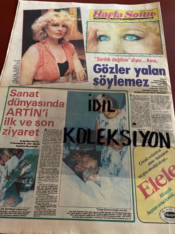 HAFTA SONU DERGİ - GAZETESİ DOĞUM GÜNÜ HEDİYESİ (TURKİSH MAGAZINE - NEWSPAPER) - 20 AĞUSTOS 1982 - Sayı:34 -Artin Penik-Kemal Sunal-Romalı Perihan-Ender Murat-Şorolo Lemi-Müjdat Gezen-Bülent Kayabaş-Tansu Okan-Zerrin Okan-Zeki Müren-Emel Sayın-Artin Penik-Hülya Sözer-Suna Yıldızoğlu-Marilyn Monroe-Can Can-Muzaffer Abacı-Vahdet Vural-Selçuk Ural-Güngör Bayrak-Turan Sezgin-Ajda Pekkan-Cenk Koray-Sevda Ferdağ-Gönül Akkor-Samime Sanay-Musfik Kenter-Seden Kızıltunç-Suna Yıldızoğlu-Ahmet Kastelli-Sevim Tuna-Tanju Okan-Bülent Ersoy-Yılmaz Güney-Hale Soygazi-Ahmet Özhan-Leyla Sayar-Güneri Tecer-Özay Gönlüm-Kâmil Sönmez-Ayşe Sönmez-Ömür Abacı-Selma Halit Bezmen-Ayşegül Ömer Dinçkök-Nilgun Nallı Keçili-Aysun Ertan Balin-Barlas Kuntay-Erdoğan Senay-Ersan Feray-Şükran Mehmet Hattat-Orsan Öymen-Nadya Berto Romel-Zeynep Egemen Bostancı-Meral Ömer Garp-Ertan Balin-Muhttin Oney-Koray Bayraktaroğlu-Özdemir Atman-Canan Cıvaoğlu-Nuri Bayar-Sevinç Aydın-Cemil İpekçi-Hüseyin Çelen-Taner Baytok-İran Özaydın, Tahsin Öztin tarafından kaleme alınmıştır. Eser Orhan Olcay editörlüğünde hazırlanmıştır. Kitap Hürriyet gazetecilik tarafından yayınlanmıştır. 12 sayfadır. HAFTA SONU DERGİ - GAZETESİ DOĞUM GÜNÜ HEDİYESİ (TURKİSH MAGAZINE - NEWSPAPER) - 20 AĞUSTOS 1982 - Sayı:34 -Artin Penik-Kemal Sunal-Romalı Perihan-Ender Murat-Şorolo Lemi-Müjdat Gezen-Bülent Kayabaş-Tansu Okan-Zerrin Okan-Zeki Müren-Emel Sayın-Artin Penik-Hülya Sözer-Suna Yıldızoğlu-Marilyn Monroe-Can Can-Muzaffer Abacı-Vahdet Vural-Selçuk Ural-Güngör Bayrak-Turan Sezgin-Ajda Pekkan-Cenk Koray-Sevda Ferdağ-Gönül Akkor-Samime Sanay-Musfik Kenter-Seden Kızıltunç-Suna Yıldızoğlu-Ahmet Kastelli-Sevim Tuna-Tanju Okan-Bülent Ersoy-Yılmaz Güney-Hale Soygazi-Ahmet Özhan-Leyla Sayar-Güneri Tecer-Özay Gönlüm-Kâmil Sönmez-Ayşe Sönmez-Ömür Abacı-Selma Halit Bezmen-Ayşegül Ömer Dinçkök-Nilgun Nallı Keçili-Aysun Ertan Balin-Barlas Kuntay-Erdoğan Senay-Ersan Feray-Şükran Mehmet Hattat-Orsan Öymen-Nadya Berto Romel-Zeynep Egemen Bostancı-Meral Ömer Garp-Ertan Balin-Muhttin Oney-Koray Bayraktaroğlu-Özdemir Atman-Canan Cıvaoğlu-Nuri Bayar-Sevinç Aydın-Cemil İpekçi-Hüseyin Çelen-Taner Baytok-İran Özaydın adlı eser Türkçe dilindedir.
