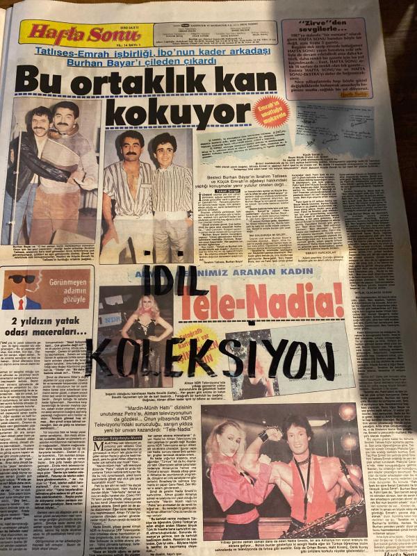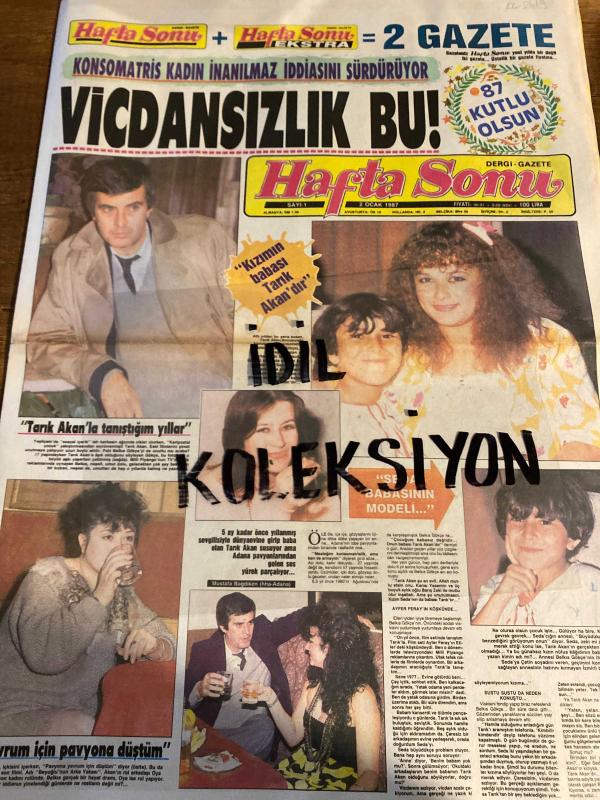 HAFTA SONU DERGİ - GAZETESİ DOĞUM GÜNÜ HEDİYESİ (TURKİSH MAGAZINE - NEWSPAPER) - TAM TAKIM 8 SAYFADIR - 2 OCAK 1987 - Sayı:1 - Tarık Akan-Belkıs Gökçe-Mustafa Bağdiken-Müjde Ar-Zeki Müren-Vitali Hakko-Kethy Hakko-Betina Hakko-Cem Hakko-Cavit Kılıç-Müslüm Toprak-Nil Burak-Orhan Gencebay-Sevim Emre-perihan Savaş-Kemal Egesan-Can Tufan-erzen Pakel Onur-1000 senaryolu aktör eskisi Bülent oran-Yeşilçam’da futbolcu hastalığı-Sermin Can-Güler Özen-Şükran Özer doruk-Hakkı dağdeviren-Adnan Menderes-İbrahim Tatlıses-Emrah-Nadia Smolik-Burhan Bayar-Ahu Tuğba-Gül,Ekren Dürüst-Hülya Tuğlu-, Ergil Tezerdi tarafından kaleme alınmıştır. Eser Orhan Olcay editörlüğünde hazırlanmıştır. Kitap Hürriyet gazetecilik tarafından yayınlanmıştır. 8 sayfadır. HAFTA SONU DERGİ - GAZETESİ DOĞUM GÜNÜ HEDİYESİ (TURKİSH MAGAZINE - NEWSPAPER) - TAM TAKIM 8 SAYFADIR - 2 OCAK 1987 - Sayı:1 - Tarık Akan-Belkıs Gökçe-Mustafa Bağdiken-Müjde Ar-Zeki Müren-Vitali Hakko-Kethy Hakko-Betina Hakko-Cem Hakko-Cavit Kılıç-Müslüm Toprak-Nil Burak-Orhan Gencebay-Sevim Emre-perihan Savaş-Kemal Egesan-Can Tufan-erzen Pakel Onur-1000 senaryolu aktör eskisi Bülent oran-Yeşilçam’da futbolcu hastalığı-Sermin Can-Güler Özen-Şükran Özer doruk-Hakkı dağdeviren-Adnan Menderes-İbrahim Tatlıses-Emrah-Nadia Smolik-Burhan Bayar-Ahu Tuğba-Gül,Ekren Dürüst-Hülya Tuğlu- adlı eser Türkçe dilindedir.