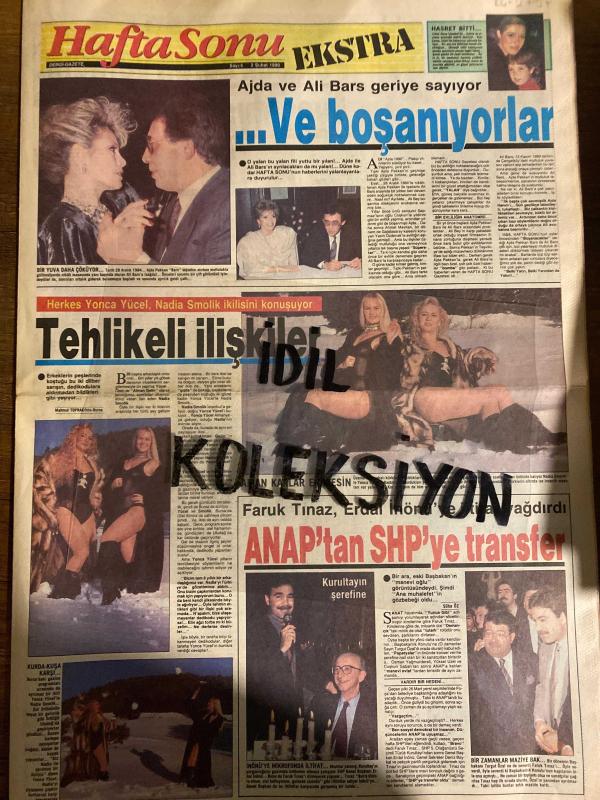 HAFTA SONU DERGİ - GAZETESİ EKSTRA EKİ DOĞUM GÜNÜ HEDİYESİ (TURKİSH -MAGAZINE - NEWSPAPER) - TAM TAKIM 8 SAYFADIR - 2 ŞUBAT 1990 - Sayı: 5 -Ajda Pekkan Bars-Ali Bars-Yonca Yücel-Nadia Smolik-Erdal İnönü-Faruk Tınaz-Turgut Özal-Elma Kabare-Serpil Örümcer-Cemil İpekçi-Nihal Arda-Semiha Yankı-Sibel Can-Hakan Ural-Müjdat Gezen-Cenk Koray-Ayşen Gruda-Simla ve Ahmet Rıza Akınsel-Ali Nazik-İbrahim Öztürk-Muzaffer Öztürk-Filiz Taçbaş-Alev Tarman-Deniz Eren-Sibel Gökçe-Pelin Akat-Semra İnanç-Yıldırım Gürses-Yaman Okay-Tanju Gürsu-Tarık Akan-Özer Ahıska-Arslan Güven-Türkan Şoray-Yılmaz Zafer-Perihan Savaş-Ahmet Mekin-Nur Sürer-Kemal Sunal-Fikret Hakan-Ahmet Hoşsöyler-Nuri Alço-Nilgün Saraylı-Gülşen Bubikoğlu-Perihan Savaş-Canan Perver Gürsu-Temel Gürsu-Yılmaz Köksal-Gülşen ve Nilgün Bubikoğlu-Refik Erduran-Erdoğan Göze-Şükrü Üstün-İclal Öngen-Alp Öyken-Sakıp Sabancı’nın tıraş keyfi-Demir Ural-Gönül Akkor Kimdir-Çiğdem İşbilir-Tevfik Gelenbe-Şener Şen-Yavuz Turgul-Leman Sam-Zeki Alasya-Günay Tün, Orhan Olcay tarafından kaleme alınmıştır. Eser Ahmet Erçalık editörlüğünde hazırlanmıştır. Kitap Hürriyet gazetecilik tarafından yayınlanmıştır. 8 sayfadır. HAFTA SONU DERGİ - GAZETESİ EKSTRA EKİ DOĞUM GÜNÜ HEDİYESİ (TURKİSH -MAGAZINE - NEWSPAPER) - TAM TAKIM 8 SAYFADIR - 2 ŞUBAT 1990 - Sayı: 5 -Ajda Pekkan Bars-Ali Bars-Yonca Yücel-Nadia Smolik-Erdal İnönü-Faruk Tınaz-Turgut Özal-Elma Kabare-Serpil Örümcer-Cemil İpekçi-Nihal Arda-Semiha Yankı-Sibel Can-Hakan Ural-Müjdat Gezen-Cenk Koray-Ayşen Gruda-Simla ve Ahmet Rıza Akınsel-Ali Nazik-İbrahim Öztürk-Muzaffer Öztürk-Filiz Taçbaş-Alev Tarman-Deniz Eren-Sibel Gökçe-Pelin Akat-Semra İnanç-Yıldırım Gürses-Yaman Okay-Tanju Gürsu-Tarık Akan-Özer Ahıska-Arslan Güven-Türkan Şoray-Yılmaz Zafer-Perihan Savaş-Ahmet Mekin-Nur Sürer-Kemal Sunal-Fikret Hakan-Ahmet Hoşsöyler-Nuri Alço-Nilgün Saraylı-Gülşen Bubikoğlu-Perihan Savaş-Canan Perver Gürsu-Temel Gürsu-Yılmaz Köksal-Gülşen ve Nilgün Bubikoğlu-Refik Erduran-Erdoğan Göze-Şükrü Üstün-İclal Öngen-Alp Öyken-Sakıp Sabancı’nın tıraş keyfi-Demir Ural-Gönül Akkor Kimdir-Çiğdem İşbilir-Tevfik Gelenbe-Şener Şen-Yavuz Turgul-Leman Sam-Zeki Alasya-Günay Tün adlı eser Türkçe dilindedir.